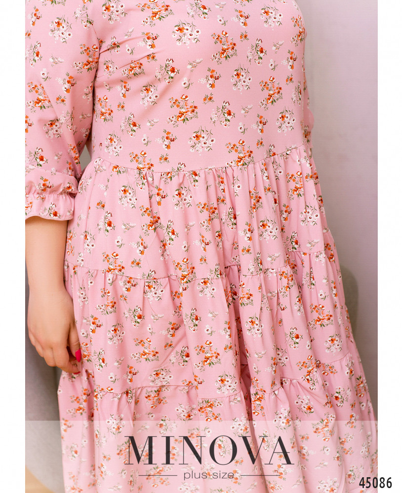 Нежное воздушное платье из тонкого летящего материала без застежек и карманов. Подол подшит к лифу и состоит из нескольких слоев оборок. Вырез горловины полукруглый. Женственные рукава ¾ с небольшой оборкой делают эту модель универсальной для весеннего и летнего сезонов.