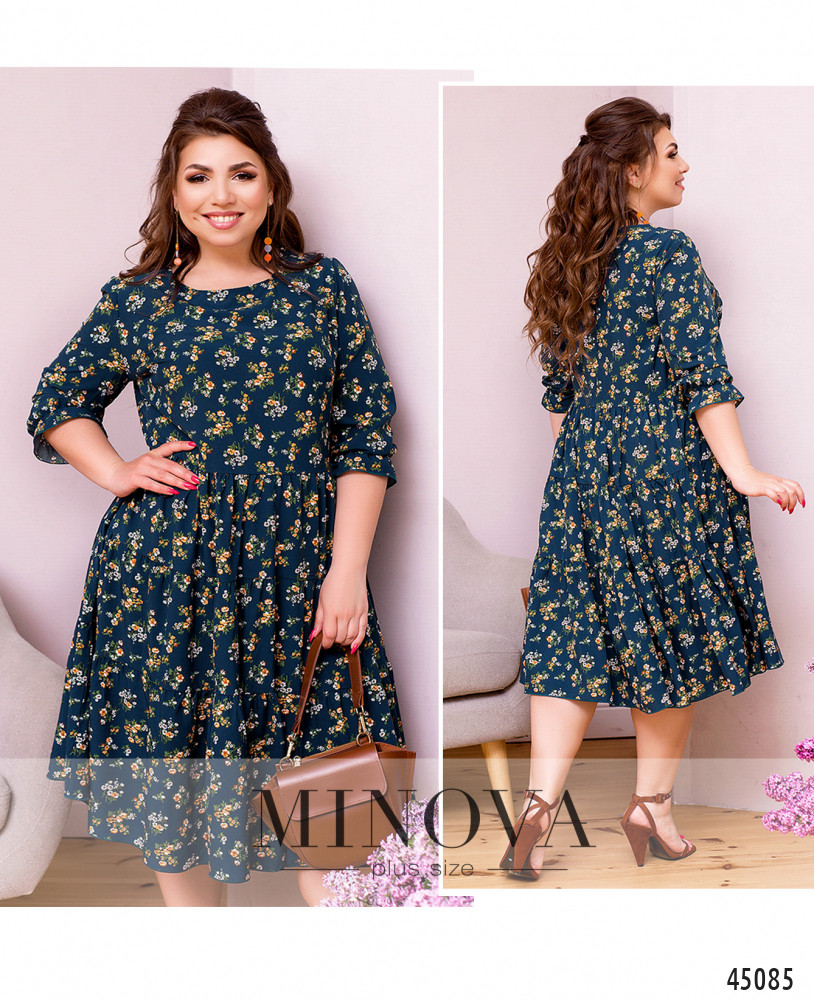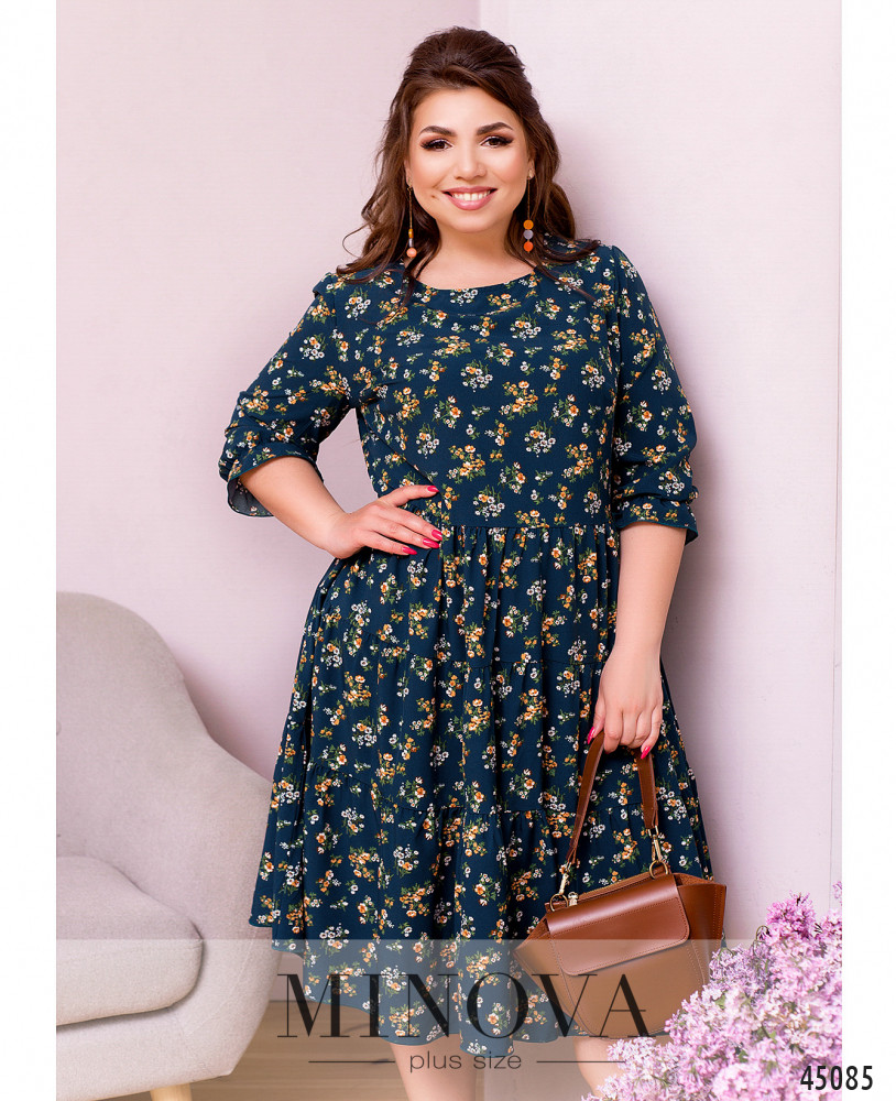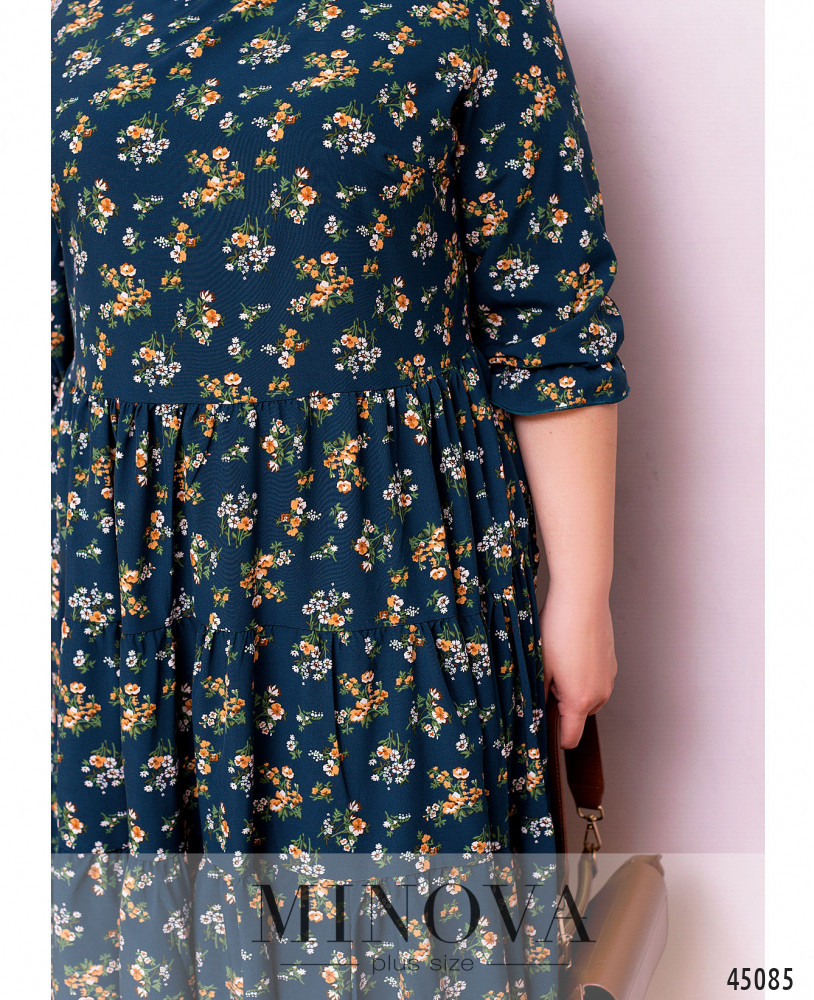 Нежное воздушное платье из тонкого летящего материала без застежек и карманов. Подол подшит к лифу и состоит из нескольких слоев оборок. Вырез горловины полукруглый. Женственные рукава ¾ с небольшой оборкой делают эту модель универсальной для весеннего и летнего сезонов.