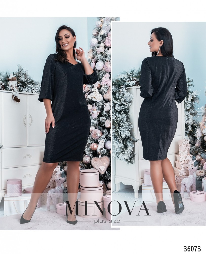 Приталенное платье батал от Minova выглядит на первый взгляд довольно простым, но на самом деле оно нарядное – благодаря нитям люрекса, пропущенным через ткань. Платье очаровательно переливается при электрическом освещении. Изнутри ткань мягкая, приятная к телу. На груди – небольшие вытачки, карманов нет. Рукава полной длины, с резинками, вшитыми на месте манжет. Застёгивается на вшитую по спинке змейку. Вырез горловины полукруглый, но с заострённым низом, неглубокий. Однотонная расцветка и минималистичный дизайн дают возможность выбирать каждый раз разные аксессуары и обувь, создавая новые образы.