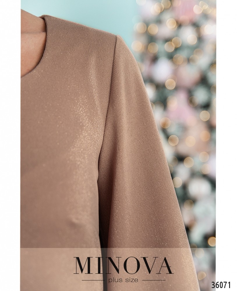 Приталенное платье батал от Minova выглядит на первый взгляд довольно простым, но на самом деле оно нарядное – благодаря нитям люрекса, пропущенным через ткань. Платье очаровательно переливается при электрическом освещении. Изнутри ткань мягкая, приятная к телу. На груди – небольшие вытачки, карманов нет. Рукава полной длины, с резинками, вшитыми на месте манжет. Застёгивается на вшитую по спинке змейку. Вырез горловины полукруглый, но с заострённым низом, неглубокий. Однотонная расцветка и минималистичный дизайн дают возможность выбирать каждый раз разные аксессуары и обувь, создавая новые образы.