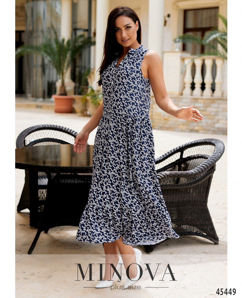 Элегантное летнее платье А-силуэта, выполненное из легкой натуральной ткани, сделает ваше лето ярче. Женственный лиф с воротником-стойкой и пуговицами спереди на планке плавно переходит в расклешенный воздушный подол с оборкой.