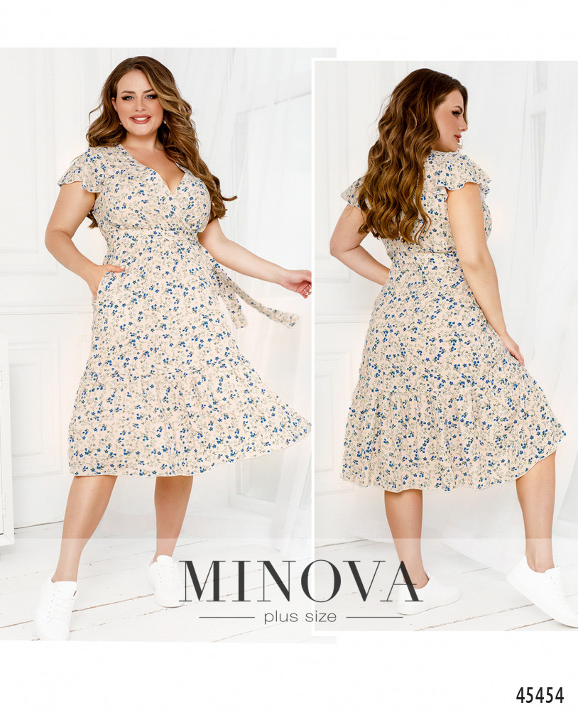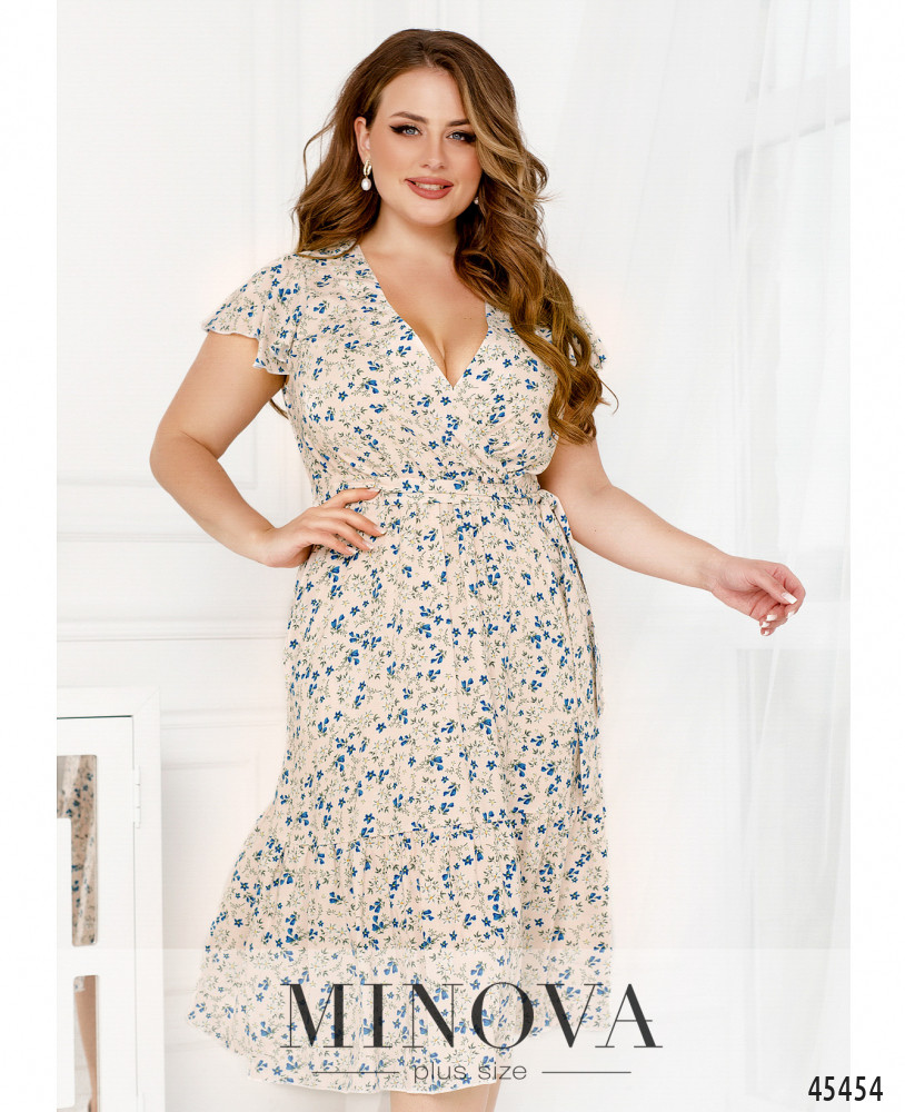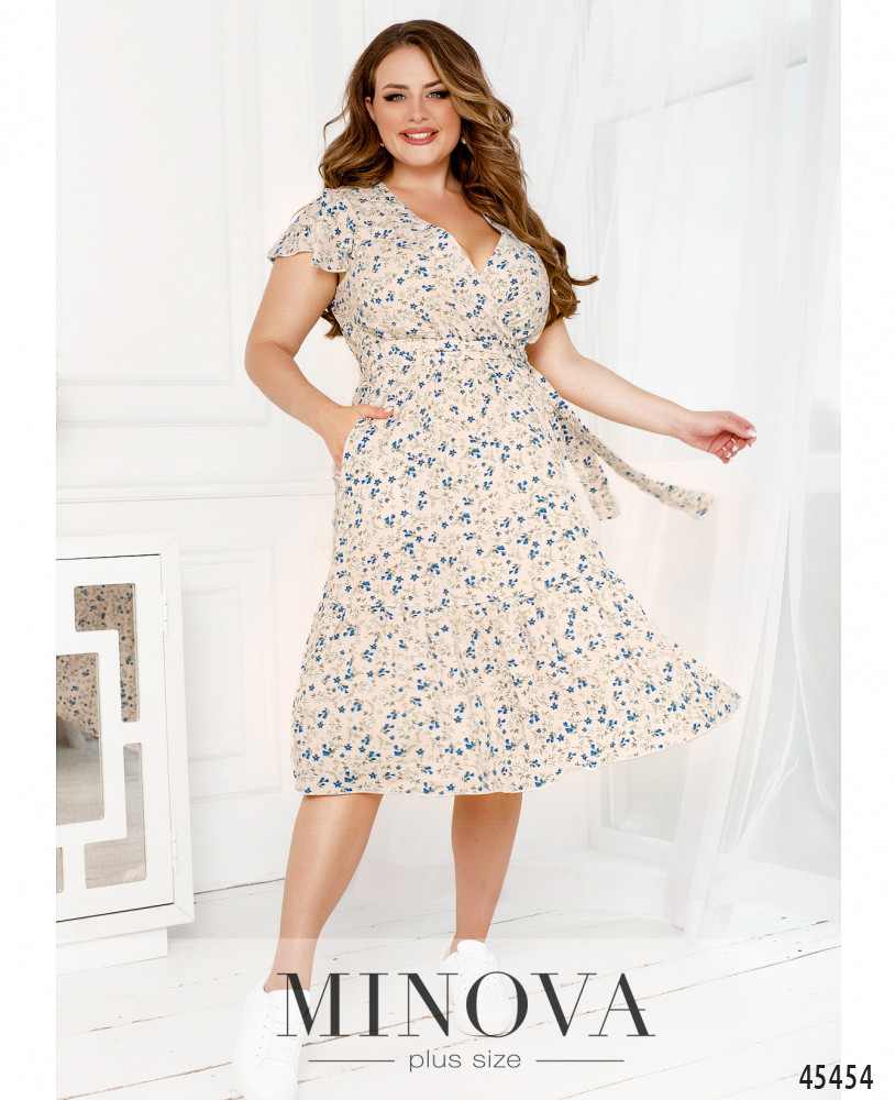 Очаровательное приталенное платье с резинкой, вшитой по линии талии, выполнено из натуральной ткани с контрастным принтом. В этой модели с воздушными рукавами-крылышками, глубоким V-образным декольте, подшитым на запАх, и воланом по краю подола вы сможете создать нежный и чувственный образ на каждый день. Дополните его текстильным поясом в тон, который идет в комплекте
