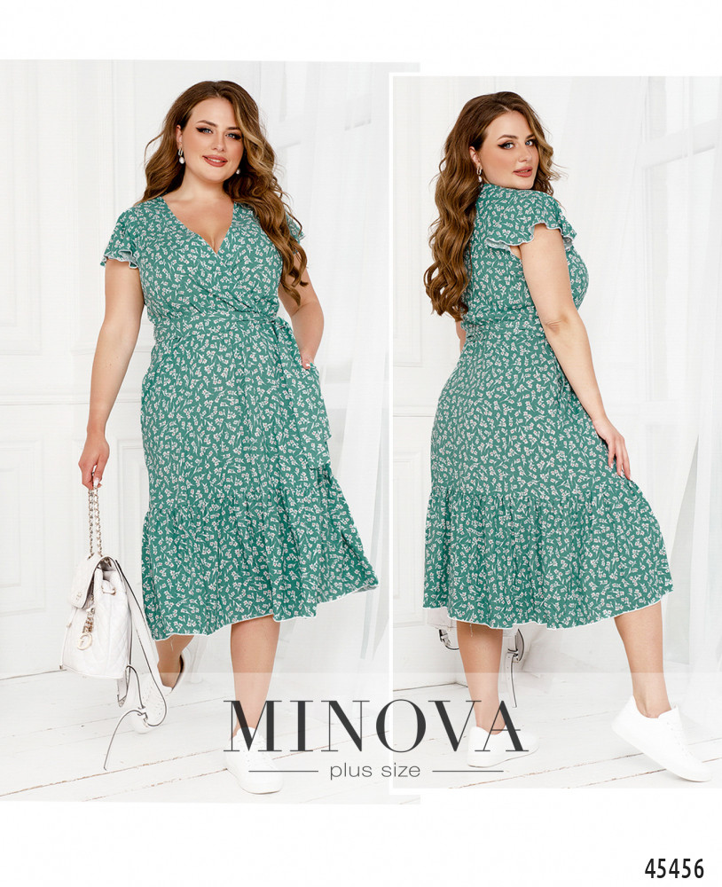 Очаровательное приталенное платье с резинкой, вшитой по линии талии, выполнено из натуральной ткани с контрастным принтом. В этой модели с воздушными рукавами-крылышками, глубоким V-образным декольте, подшитым на запАх, и воланом по краю подола вы сможете создать нежный и чувственный образ на каждый день. Дополните его текстильным поясом в тон, который идет в комплекте