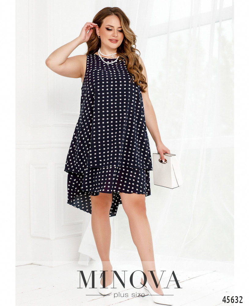 Воздушное летнее платье А-силуэта добавит в ваш образ чуточку кокетства, романтизма и женственности. Изюминкой этой модели является двуслойный ассиметричный подол, удлиненный по спинке и ниспадающий мягкими складками. Платье застегивается сзади на маленькую пуговку под шеей. Пояс НЕ входит в комплект.