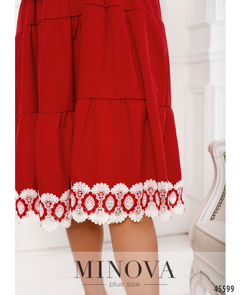 Романтичное однотонное платье с врезными карманами из легкой невесомой ткани подойдет и для прогулки с друзьями, и для поездки за город. Благодаря просторному А-силуэту вы будете чувствовать себя свободно и комфортно, а подол, состоящих из нескольких слоев оборок и дополненный кружевом, сделает ваш образ кокетливым и женственным. Пояс НЕ входит в комплект.