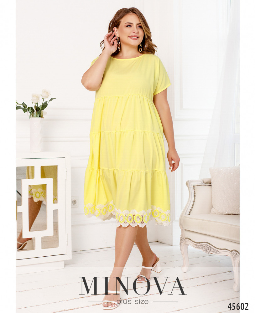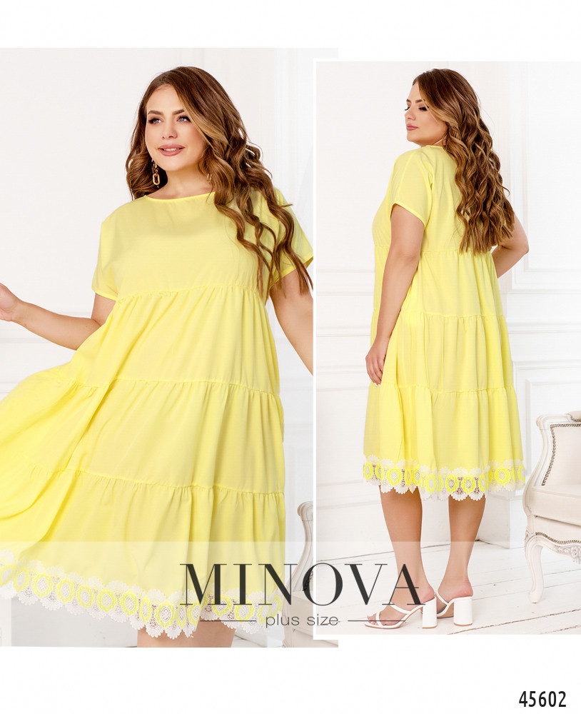 Романтичное однотонное платье с врезными карманами из легкой невесомой ткани подойдет и для прогулки с друзьями, и для поездки за город. Благодаря просторному А-силуэту вы будете чувствовать себя свободно и комфортно, а подол, состоящих из нескольких слоев оборок и дополненный кружевом, сделает ваш образ кокетливым и женственным. Пояс НЕ входит в комплект.