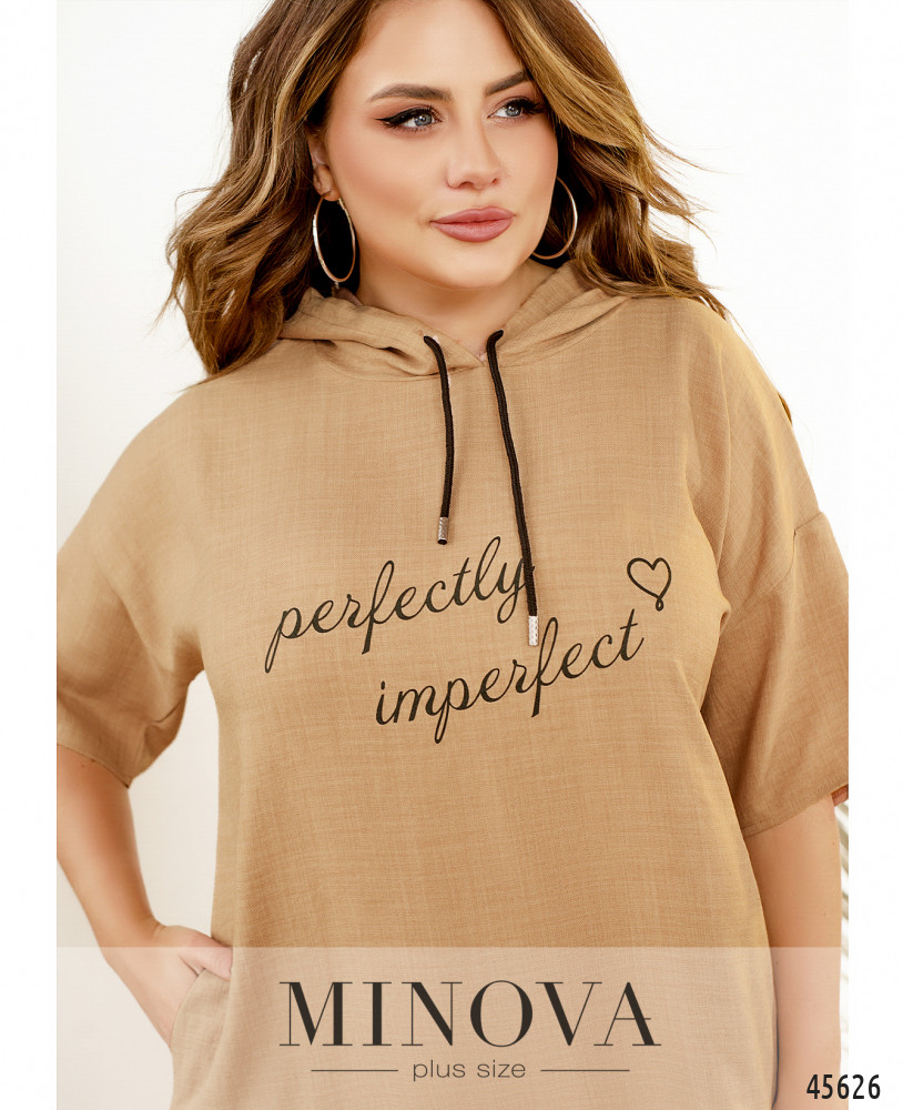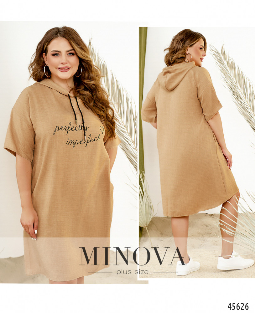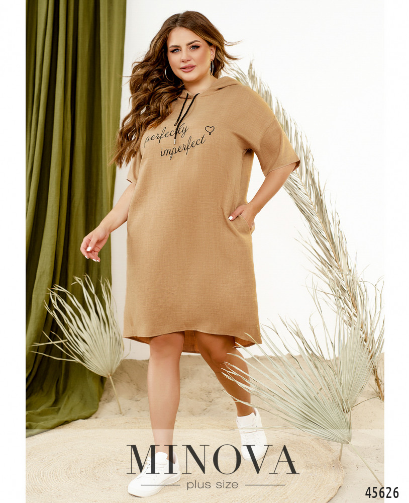 Минималистичное платье в спортивном стиле с декоративным принтом на груди отличается универсальностью, удобством и практичностью. Эта модель дополнена капюшоном на кулиске, короткими рукавами с приспущенной линией плеч и карманами в боковых швах Пояс НЕ входит в комплект.