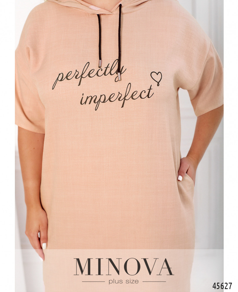 Минималистичное платье в спортивном стиле с декоративным принтом на груди отличается универсальностью, удобством и практичностью. Эта модель дополнена капюшоном на кулиске, короткими рукавами с приспущенной линией плеч и карманами в боковых швах Пояс НЕ входит в комплект.