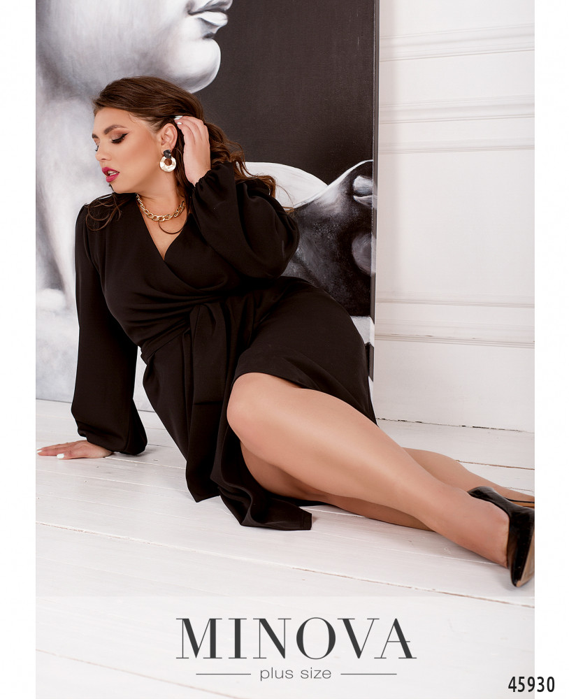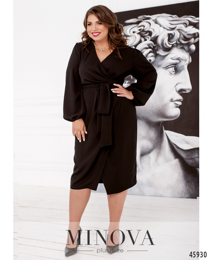 Стильное однотонное платье с длинными объемными рукавами на резинках может в полной мере подчеркнуть достоинства фигуры и помочь создать женственный и нежный образ. Модель завязывается на запАх, что позволяет регулировать ее посадку на талии. Дополните образ широким текстильным поясом, который входит в комплект.