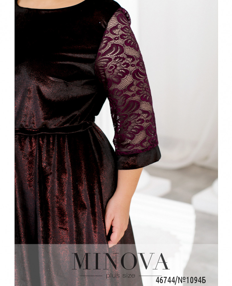 Женственное платье, выполненное из нарядной велюровой ткани, - идеальный вариант для праздника или вечеринки. Модель приталенного силуэта с тонким шнурком под кулиской, пропущенным по линии талии, привлекает внимание воздушным подолом, ниспадающим мягкими складками, и ажурными рукавами 3/4 с манжетами.