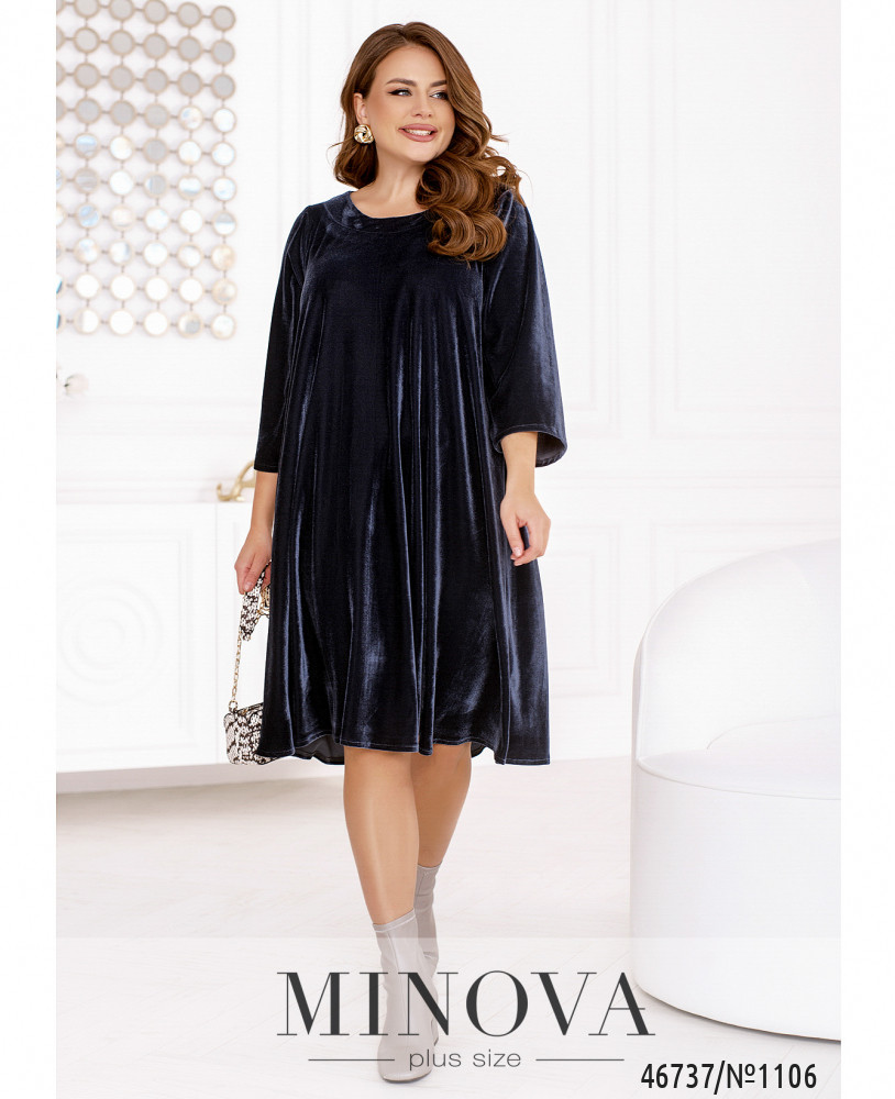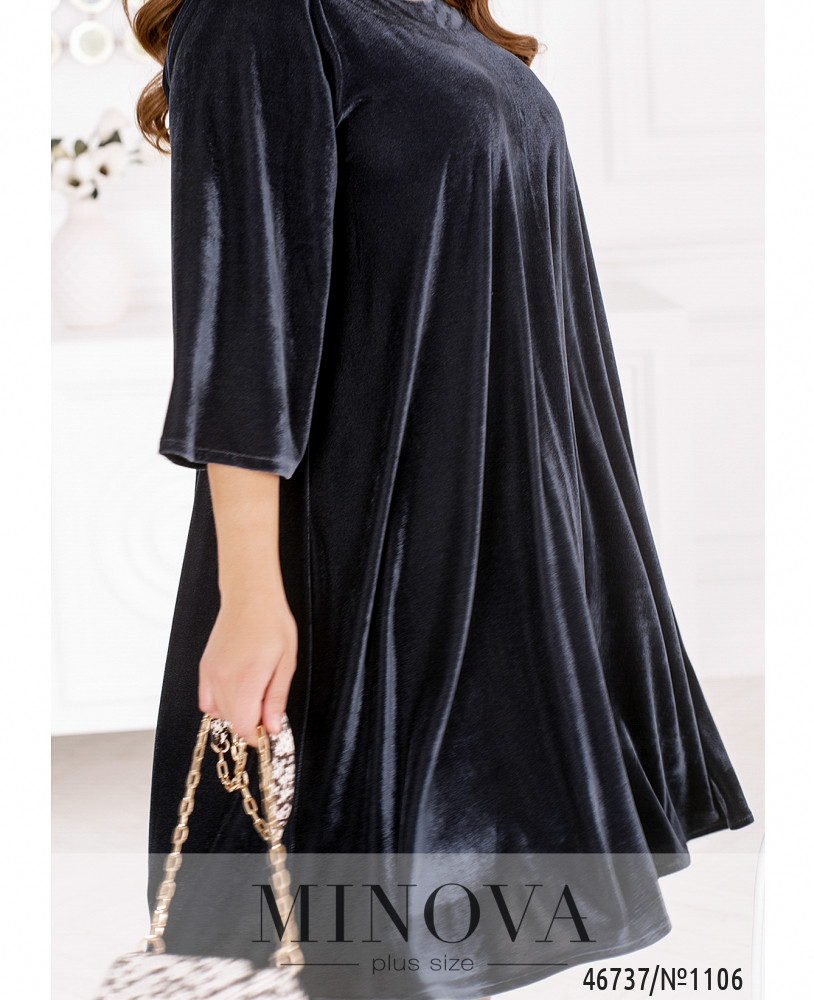 Воздушное лаконичное платье А-силуэта привлекает внимание в первую очередь своей необычной фактурой и удобством. Модель с полукруглым вырезом говловины, выполненная из мягкого велюра, дополнена рукавами 3/4 без манжет.