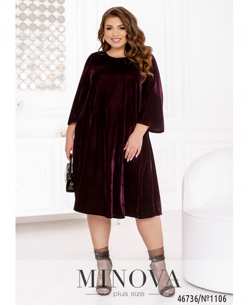 Воздушное лаконичное платье А-силуэта привлекает внимание в первую очередь своей необычной фактурой и удобством. Модель с полукруглым вырезом говловины, выполненная из мягкого велюра, дополнена рукавами 3/4 без манжет.