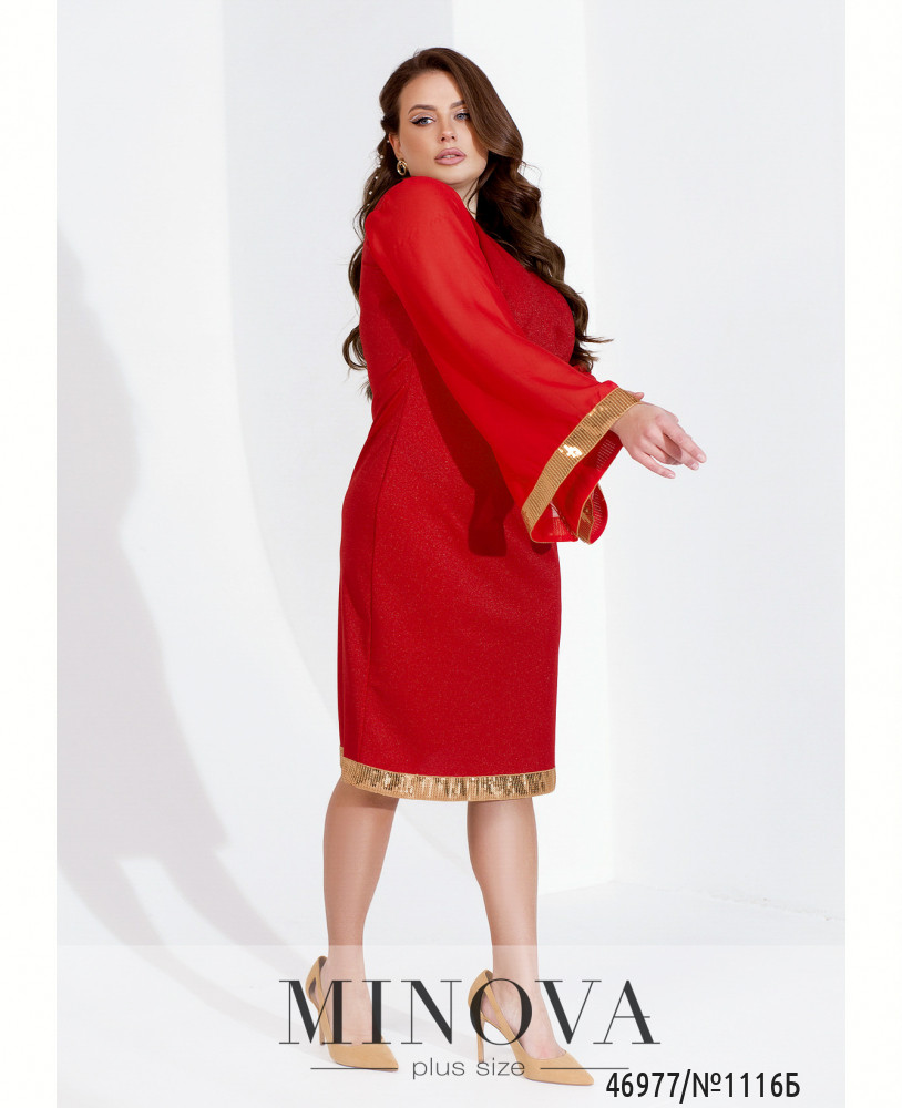 Стильное нарядное платье прямого силуэта добавит в ваш праздничный образ романтизма и женственности. Изюминкой данной модели являются изысканные полупрозрачные рукава с сияющими манжетами, расширенные к низу. Дополните образ элегантными туфлями на каблуках или минималистичными балетками.