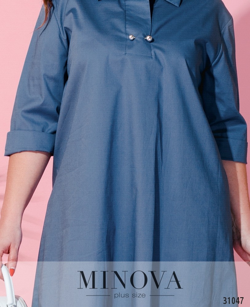 Платье – рубашка с брошью на воротнике. Платье прямого кроя со скругленным подолом на лицевой стороне. Рукава собраны в манжеты. Изделие без молнии.