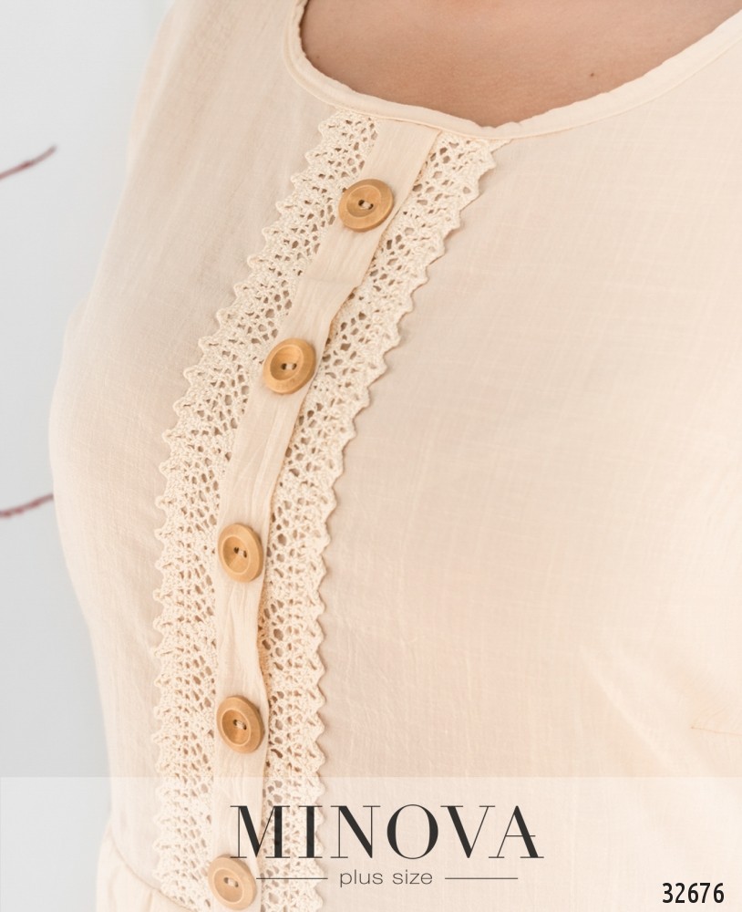 Очаровательное платье большого размера в фолк-стиле представлено в каталоге платьев батал от Minova. На груди – кружевная вставка и деревянные декоративные пуговки. Фасон – приталенный, подол расширяется, рукава небольшие, вырез горловины – полукруглый. В наличии карманы. Материал лёгкий, не тянется, слегка просвечивает, но снизу есть тонкая подкладка. Застёжек нет, платье удобно надевается. Отлично будет смотреться на девушках с типом фигуры «яблоко» или «треугольник». В каталоге представлены нежные пастельные и строгие тёмные оттенки этого платья батал.