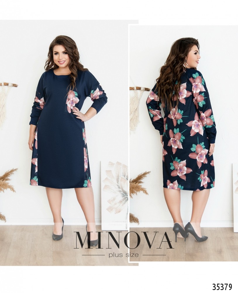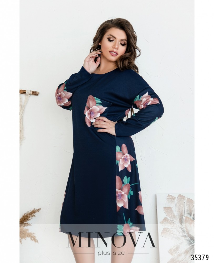 Цветочный принт, пожалуй, никогда не выйдет из моды, особенно если он такой нежный и привлекательный, как в представленной модели платья батал из новой коллекции Minova. Платье мягкое, очень приятное к телу, ткань ниспадает свободно благодаря прямому крою. Спереди материал однотонный, но не по всей ширине: по бокам подола – вставки с цветами, а также принтом украшен накладной карман на левой стороне груди и рукава. Спинка полностью украшена принтом. Вырез горловины широкий, полукруглый. Рукава полной длины с длинными, мягкими манжетами без пуговиц. Застёжки отсутствуют. Отличный выбор на каждый день или на неформальное мероприятие, можно сочетать с классическими туфельками или городской обувью.