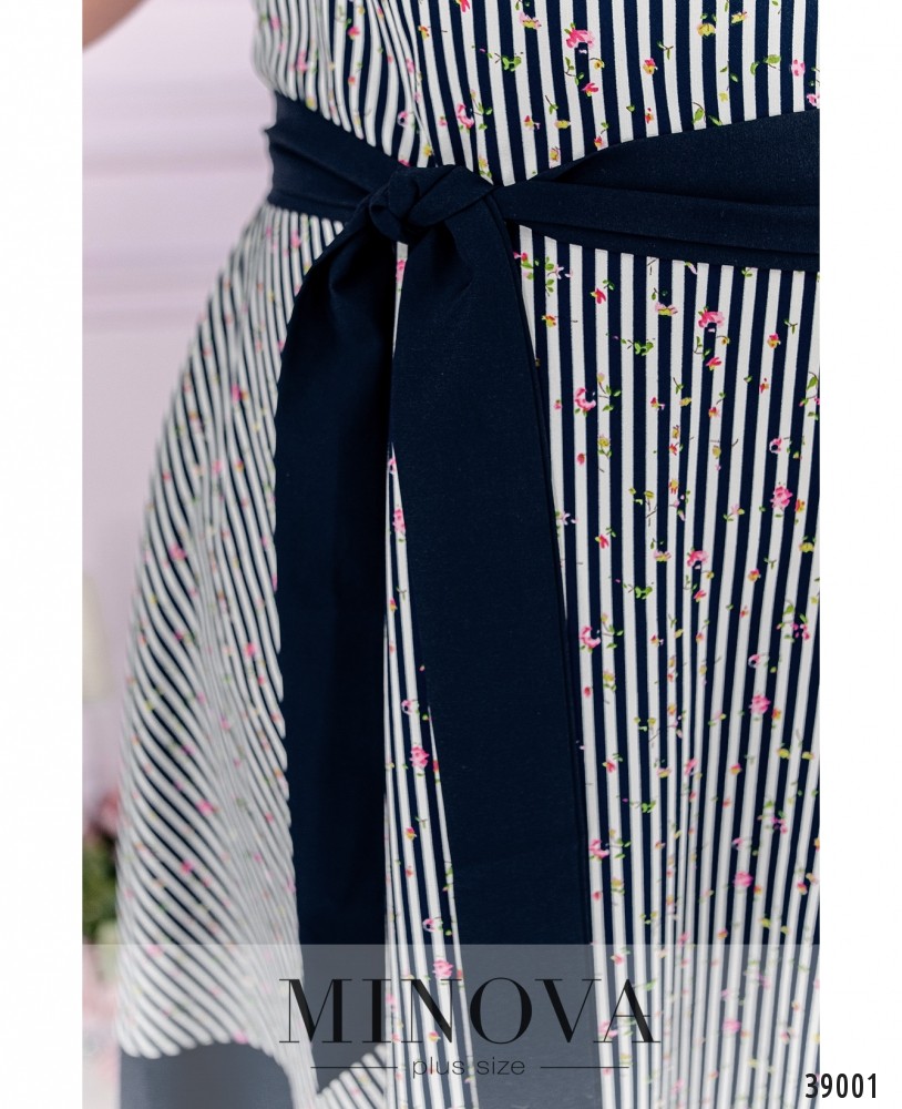 Лёгкое и стильное платье А-силуэта, рукава-бабочки, вырез горловины полукруглый, застёгивается на молнию, вшитую по спинке. Карманов нет, в комплекте пояс. Подол подшит к верху и расклешён.
