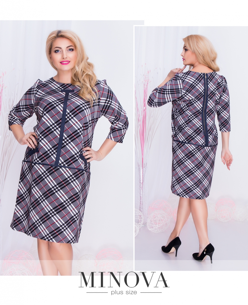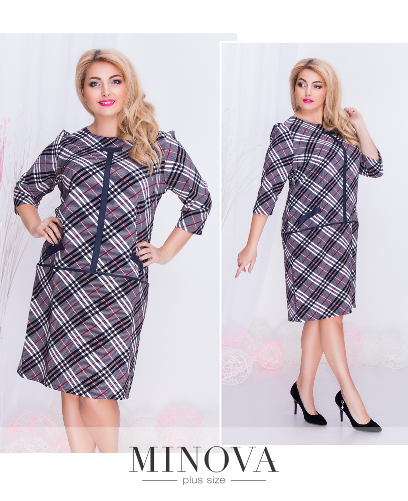 Прямое платье с карманами, рукавами ¾ и силуэтными линиями на