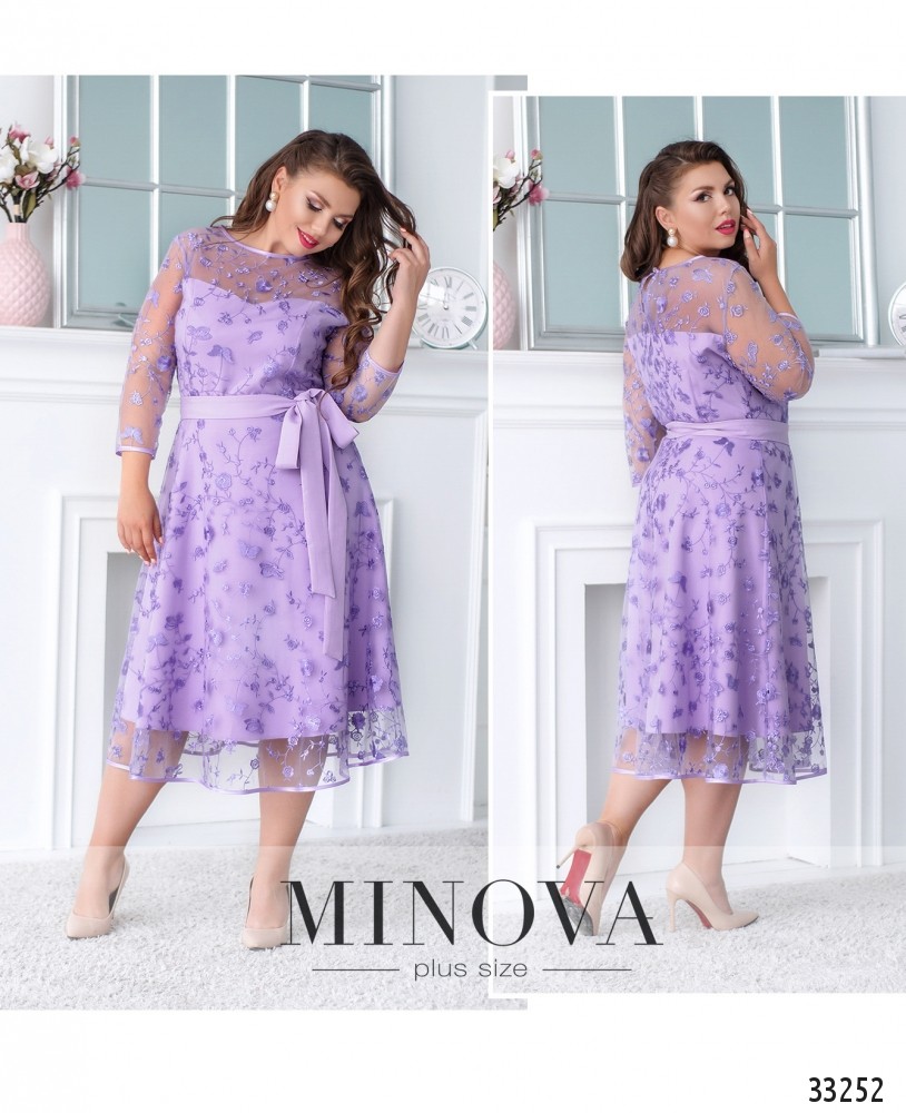 Лавандовый цвет – очень женственный и модный, особенно, если этот цвет относится к нежному гипюровому платью из каталога Minova. Нижняя часть, подкладка, не просвечивает, мягкая, приятная к телу. Верхняя часть – тонкая сеточка, украшенная цветочным узором. Лиф в районе груди и рукава – прозрачные, что добавляет лёгкости и элегантности. В комплекте – длинный широкий пояс в тон, который подчеркнёт линию талии. Застёжка-молния вшита по спине, на шее – небольшая пуговка. Платье слегка приталено, но подойдёт девушкам с любым типом фигуры, кроме, пожалуй, «прямоугольной».