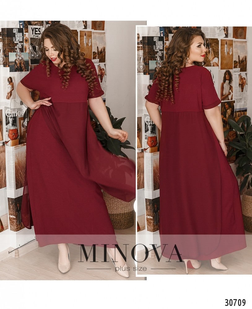 56 р-р: длина платья 129см, длина рукава 32см, обхват рукава 44см, ОГ – 116см, ОБ – 142см.