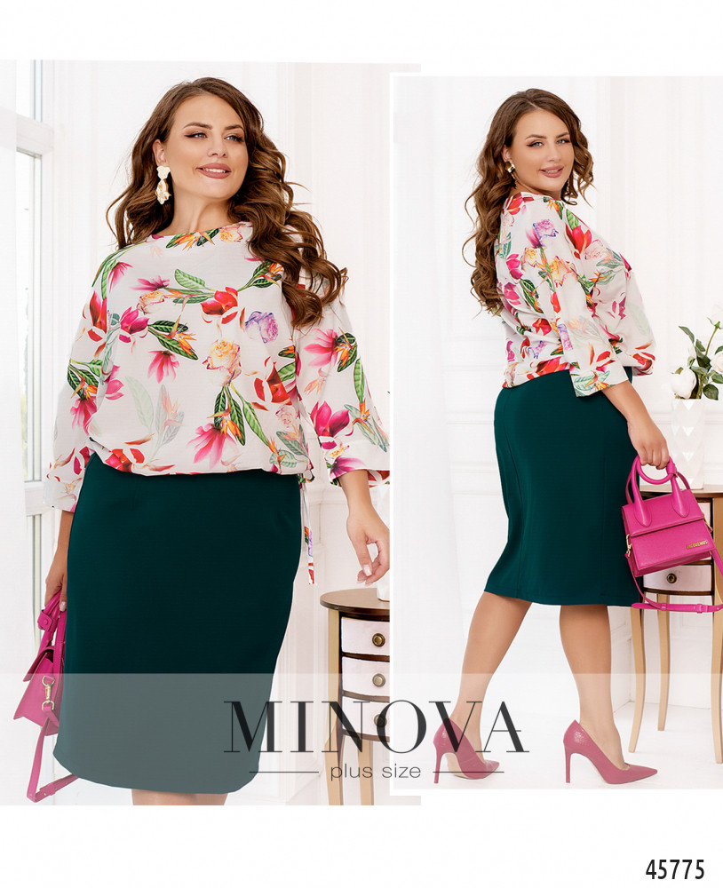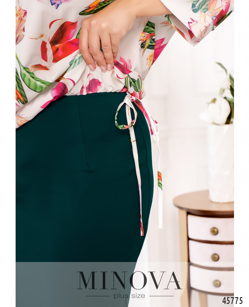 Изящное платье миди станет универсальным в вашем гардеробе, потому что в нем можно появиться как в офисе, так и на корпоративе или празднике. Яркий воздушный лиф свободного кроя с рукавами 3/4 с манжетами идеально дополнен лаконичным однотонным подолом
