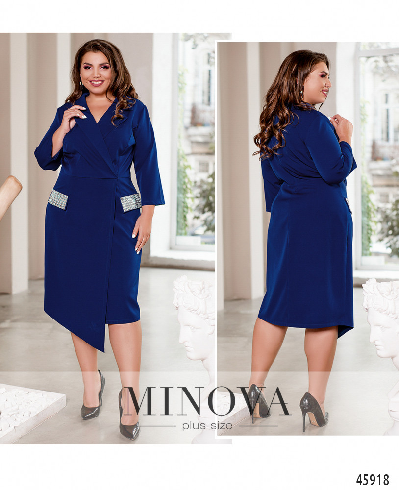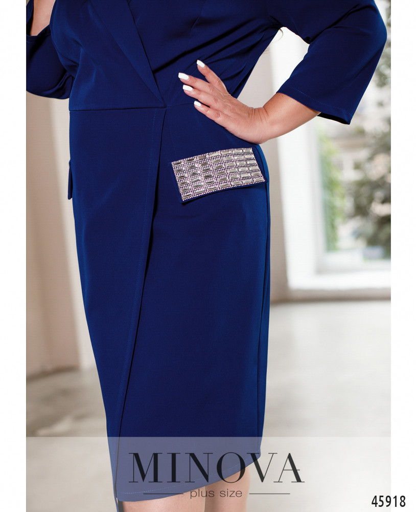 В женственном платье-миди приталенного силуэта, подшитом на запах, вы будете очаровательны как в офисе, так и на вечеринке или празднике. Эта модель дополнена воротником с лацканами, рукавами 7/8 без манжет и сияющими накладными клапанами без карманов. Изюминку добавляет ассиметричный подол и декоративные складки-защипы на лифе. Платье застегивается на змейку, вшитую по спинке.