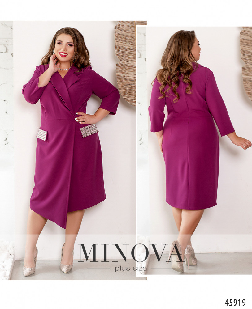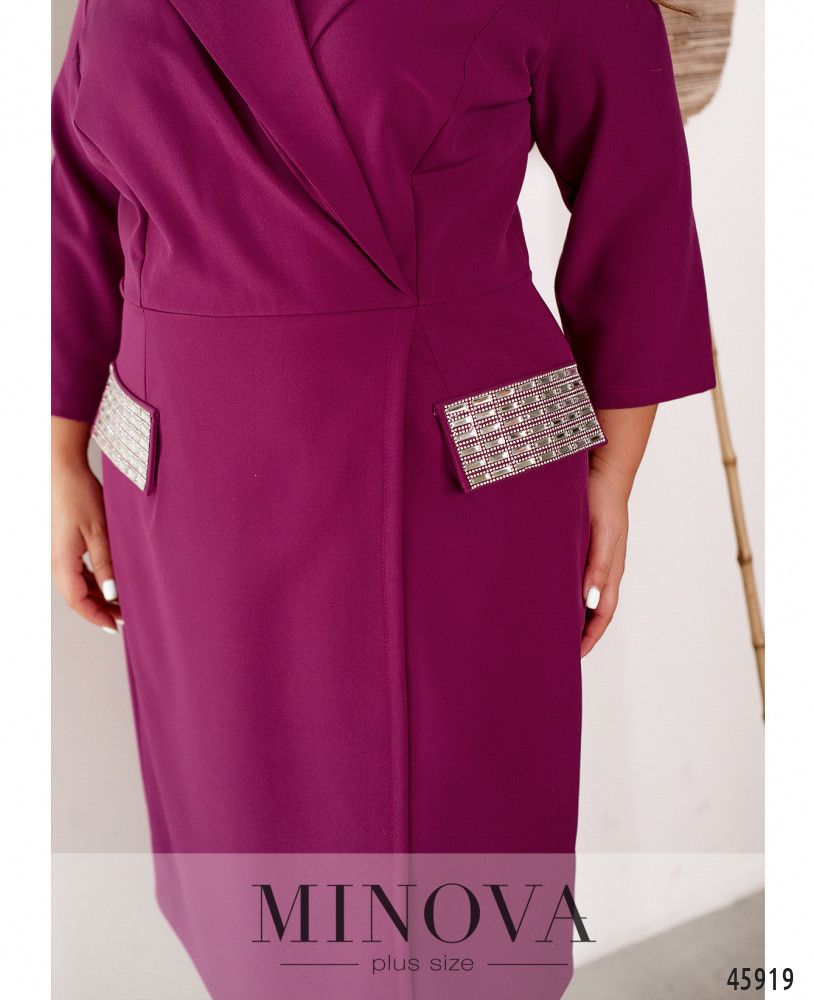 В женственном платье-миди приталенного силуэта, подшитом на запах, вы будете очаровательны как в офисе, так и на вечеринке или празднике. Эта модель дополнена воротником с лацканами, рукавами 7/8 без манжет и сияющими накладными клапанами без карманов. Изюминку добавляет ассиметричный подол и декоративные складки-защипы на лифе. Платье застегивается на змейку, вшитую по спинке.