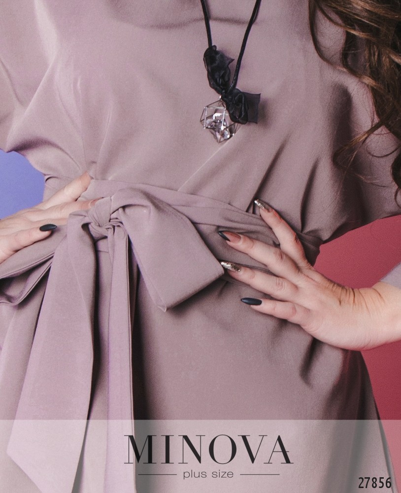 Платье – рубашка с поясом и подвеской в комплекте. Расклешенное платье А-силуэта с закругленным подолом в сторону боковых швов. Платье дополнено съемным поясом в тон.