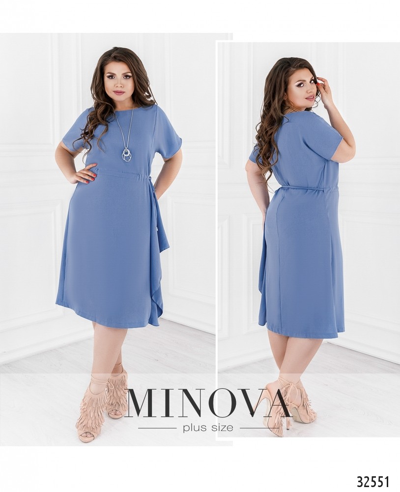 Когда сложно придумать, какое украшение подобрать к тому или иному наряду, решением станет готовый вариант из новой коллекции Minova. Представленная модель платья большого размера – идеальный выбор для девушек с типом фигуры «яблоко» или «груша». В этом платье батал есть несколько преимуществ: свободные рукава-бабочки, вытачки на поясе, сам пояс вшит и скрыт спереди, а сзади завязывается, формируя линию талии. По бокам на подоле расклешённые вставки, поэтому платье не выглядит прямоугольным. Застёжек нет – платье легко надеть благодаря широкому, но неглубокому вырезу горловины.