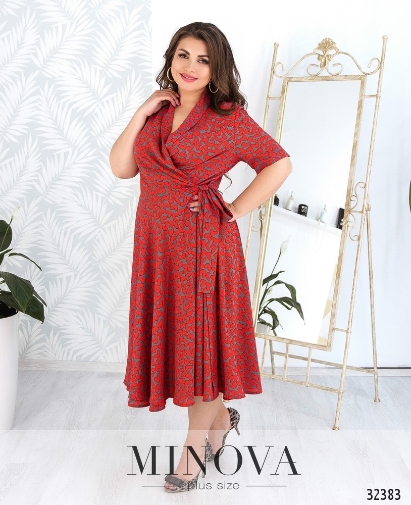 Очаровательное и женственное платье-батал с расклешённым подолом и запАхом – одна из изюминок летней коллекции одежды больших размеров от Minova. К платью в комплекте прилагается пояс; с внутренней стороны – ленты-завязки. Рукава свободные, короткие; карманы отсутствуют. Прекрасно дополнит гардероб девушек с фигурой типа «груша» или «прямоугольник» благодаря закрытым плечам и юбке-колоколу.