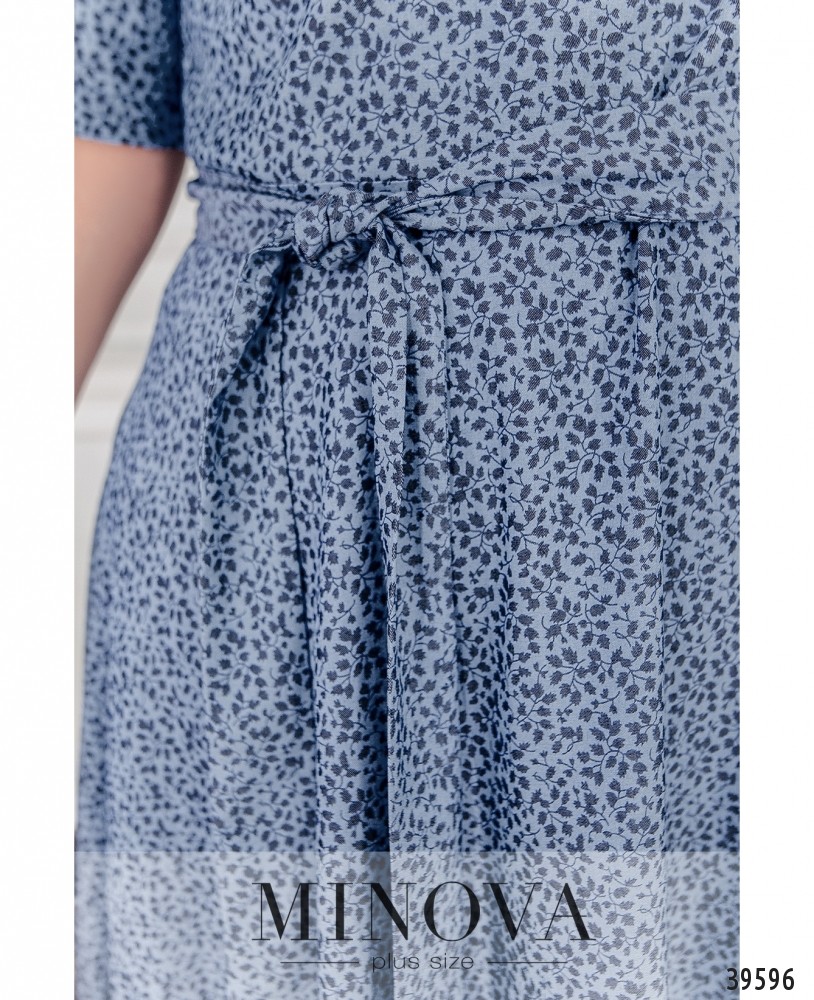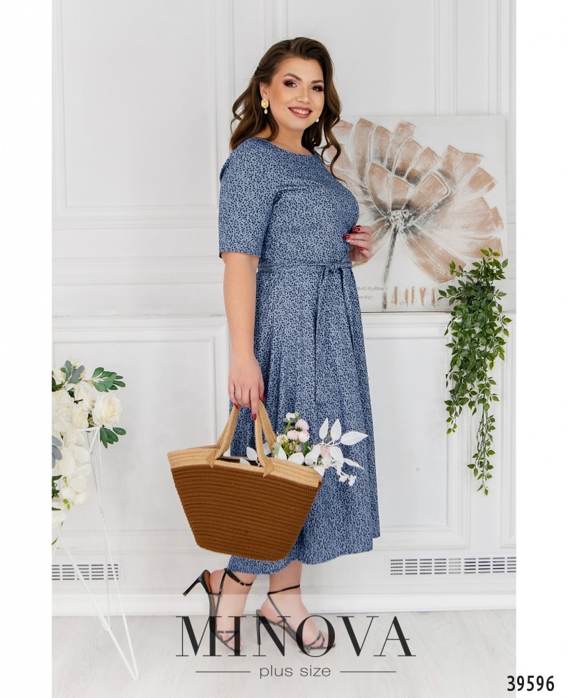 Нежное платье батал с приятным, привлекательным принтом. Подол подшит к верху, ниспадает мягкими оборками и подчёркивает талию. Рукава без манжет, на груди вытачки, застёжка - вшитая по спинке молния, карманов нет. В комплекте - тканевой пояс в тон принту.