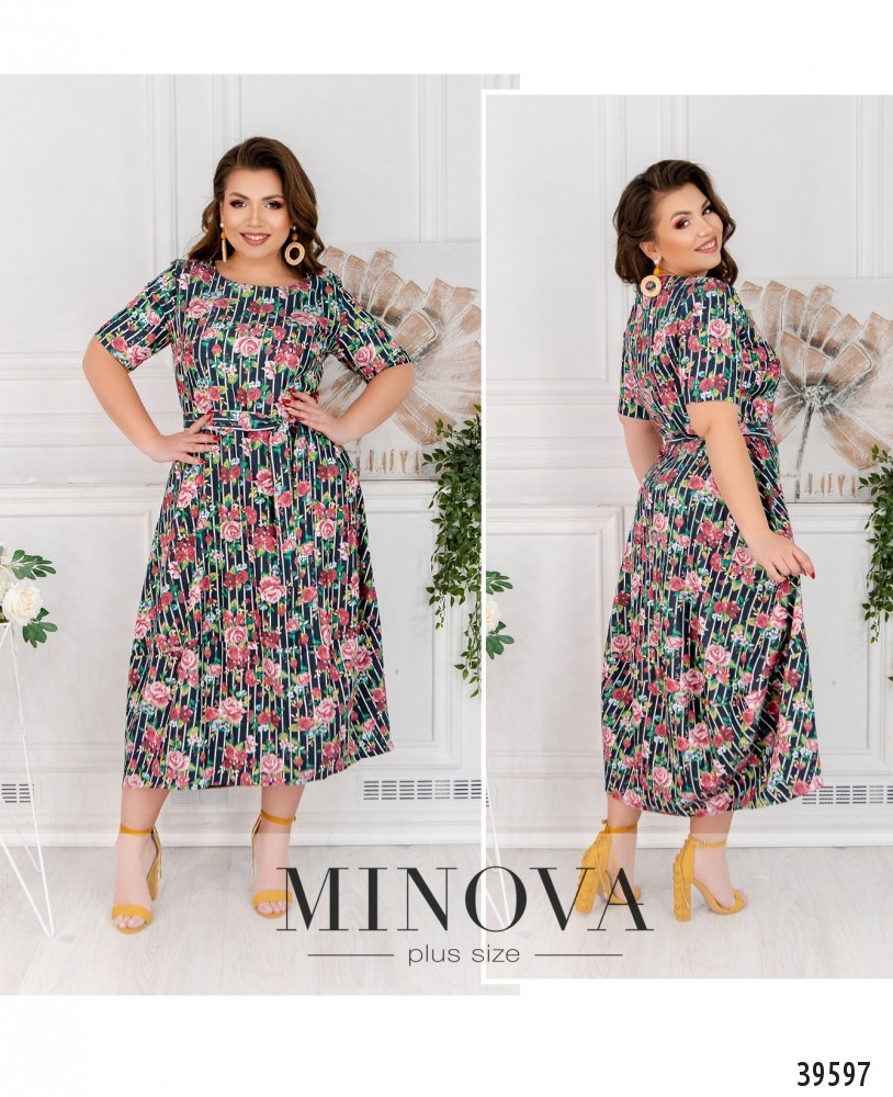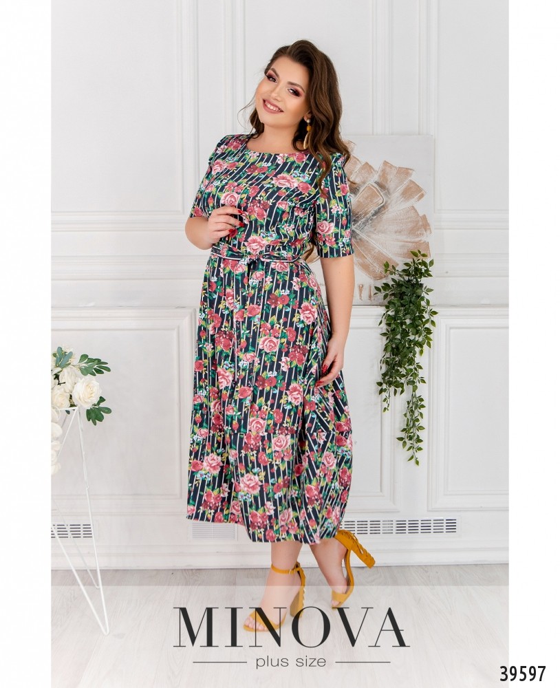 Нежное платье батал с приятным, привлекательным принтом. Подол подшит к верху, ниспадает мягкими оборками и подчёркивает талию. Рукава без манжет, на груди вытачки, застёжка - вшитая по спинке молния, карманов нет. В комплекте - тканевой пояс в тон принту.