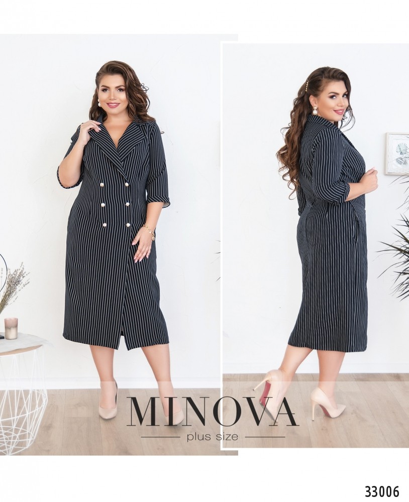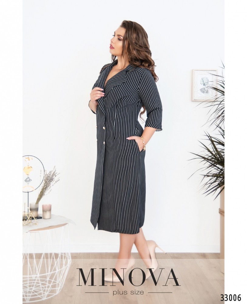 И снова – элегантное, изящное, приталенное платье-пальто из коллекции женских платьев от Minova. Платье в очень мелкую продольную полоску, в отдалении создаётся интересный визуальный эффект – стройнит и добавляет немного в росте. Рукава короткие, до локтя, с небольшими подворотами. На груди вытачки. Рабочие пуговицы – только на левом ряду, а справа - декоративные. В наличии карманы по бокам. ЗапАх двубортный, с довольно глубоким декольте. Можно надевать с удобной спортивной или классической обувью и смело экспериментировать с аксессуарами.