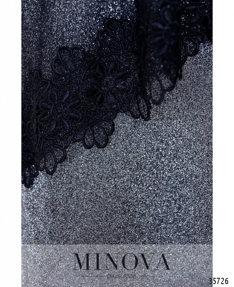 Очень стильное благодаря своей минималистичности платье батал от Minova прекрасно тем, что вы его можете дополнить любыми подходящими к случаю аксессуарами, ведь его тёмная однотонная расцветка отлично сочетается с другими оттенками! Платье двуслойное, нижний слой мягкий, приятный к телу, свободного кроя. Снизу рукавов нет. Верхняя часть – накидка, из полупрозрачного материала, украшена небольшим кружевом по подолу, подол асимметричный. Застёжек и карманов нет, вырез горловины достаточно широкий, неглубокий. Будет хорошо смотреться на любой фигуре, даже «прямоугольной», и лучше всего сочетается с классической обувью.
