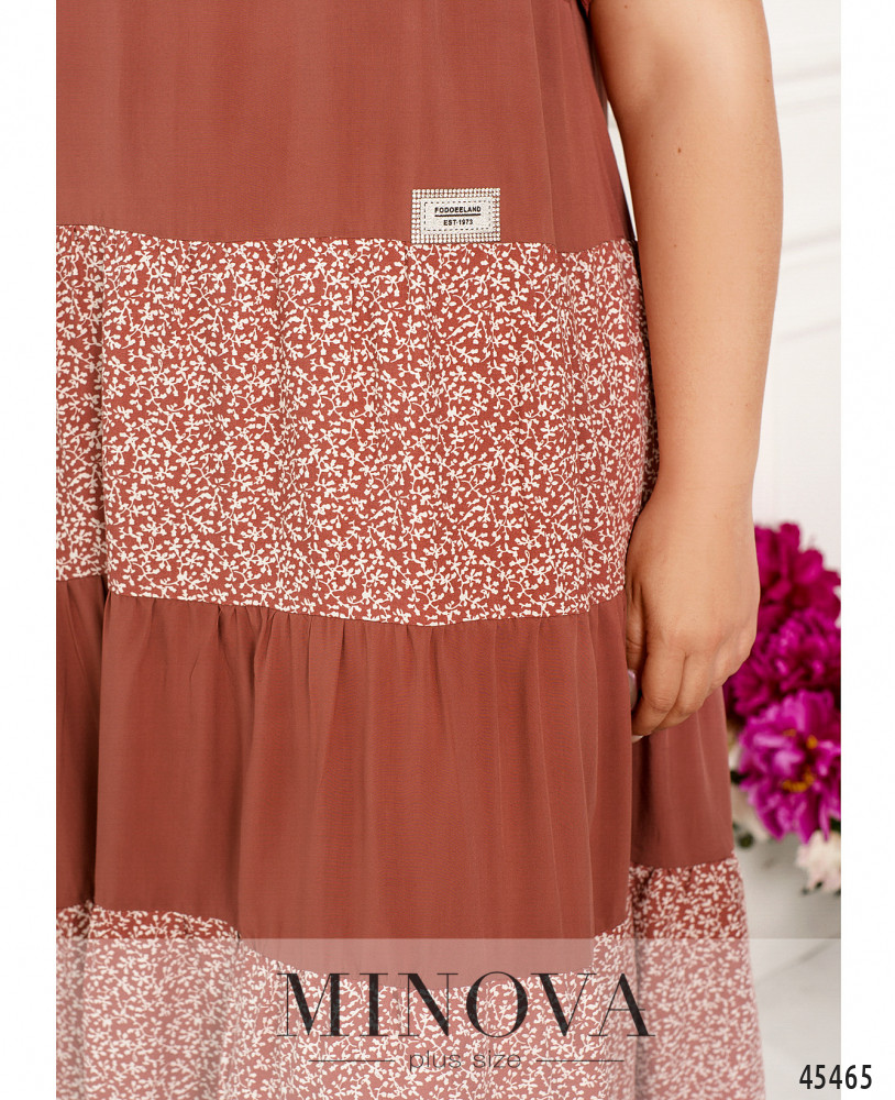 Воздушное невесомое платье А-силуэта поможет вам создать одновременно эффектный и комфортный образ. Базовый минималистичный лиф с короткими рукавами и полукруглым вырезом горловины дополняет выразительный подол, состоящий из нескольких слоев контрастных оборок.