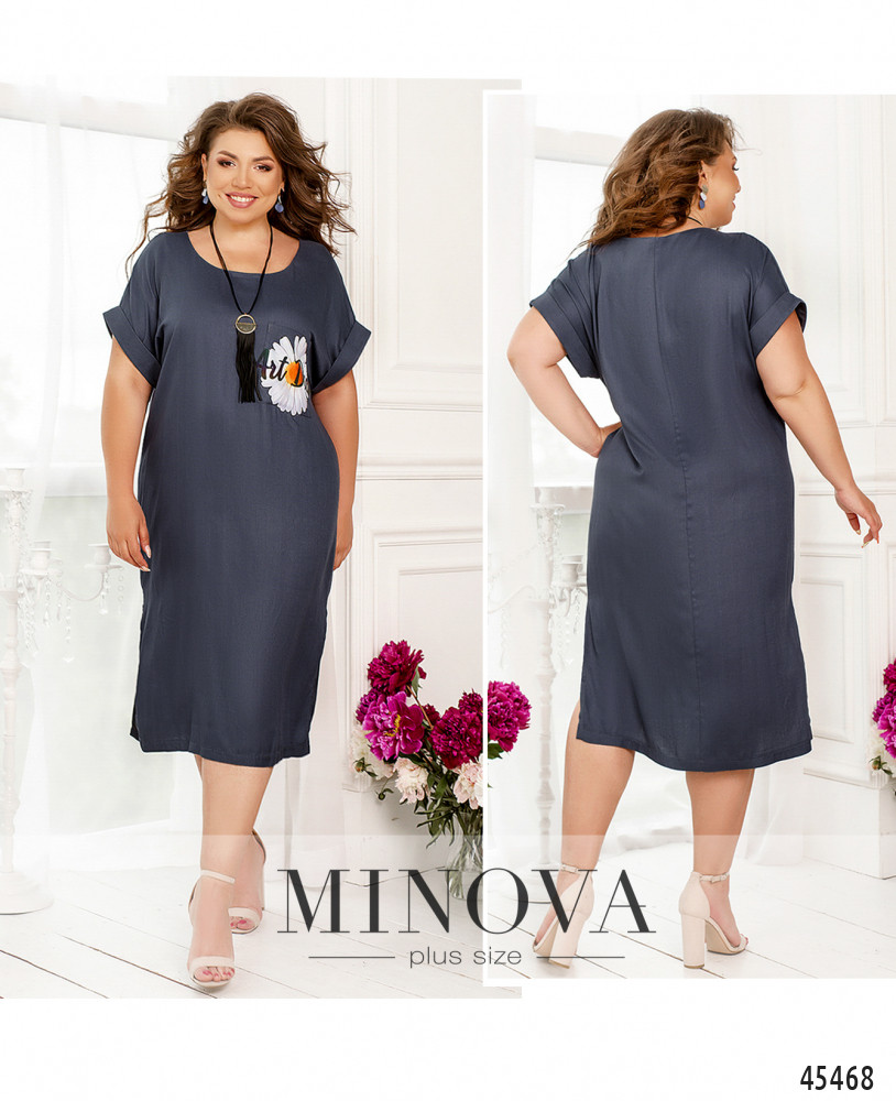 Универсальное женственное платье прямого кроя удачно впишется в любой стиль. Данная модель дополнена короткими рукавами с приспущенной линией плеча и отворотами, а также декоративным принтом на груди и разрезами по бокам, кокетливо приоткрывающими ваши ножки.
