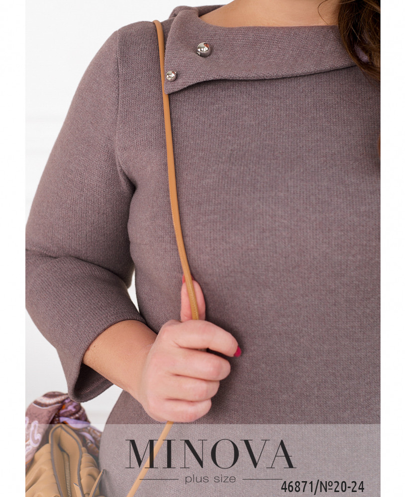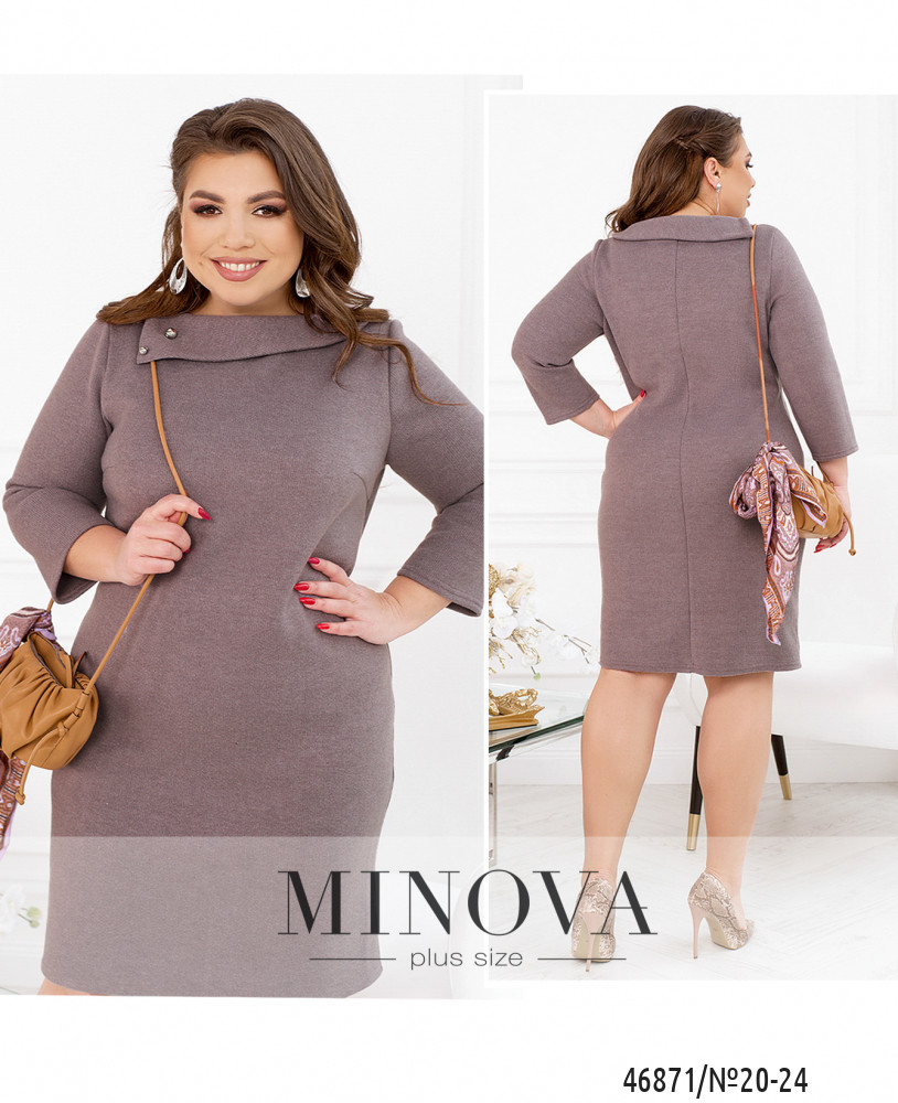 Элегантное платье батал с отложным асимметричным воротничком, рукава без манжет, на груди вытачки. Застёжек и карманов нет.