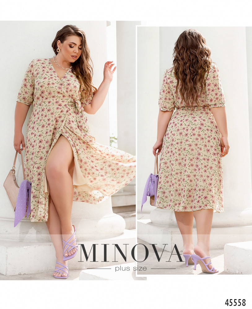 Яркое и мягкое платье плюс сайз на запАх с подкладкой. Завязывается на ленты, одна из которых продевается в отверстие на талии. Карманов нет. Рукава без подкладки, на запястьях вшиты резинки, манжет - небольшая оборка. Подол отрезной, на талии продольные вытачки вверх.