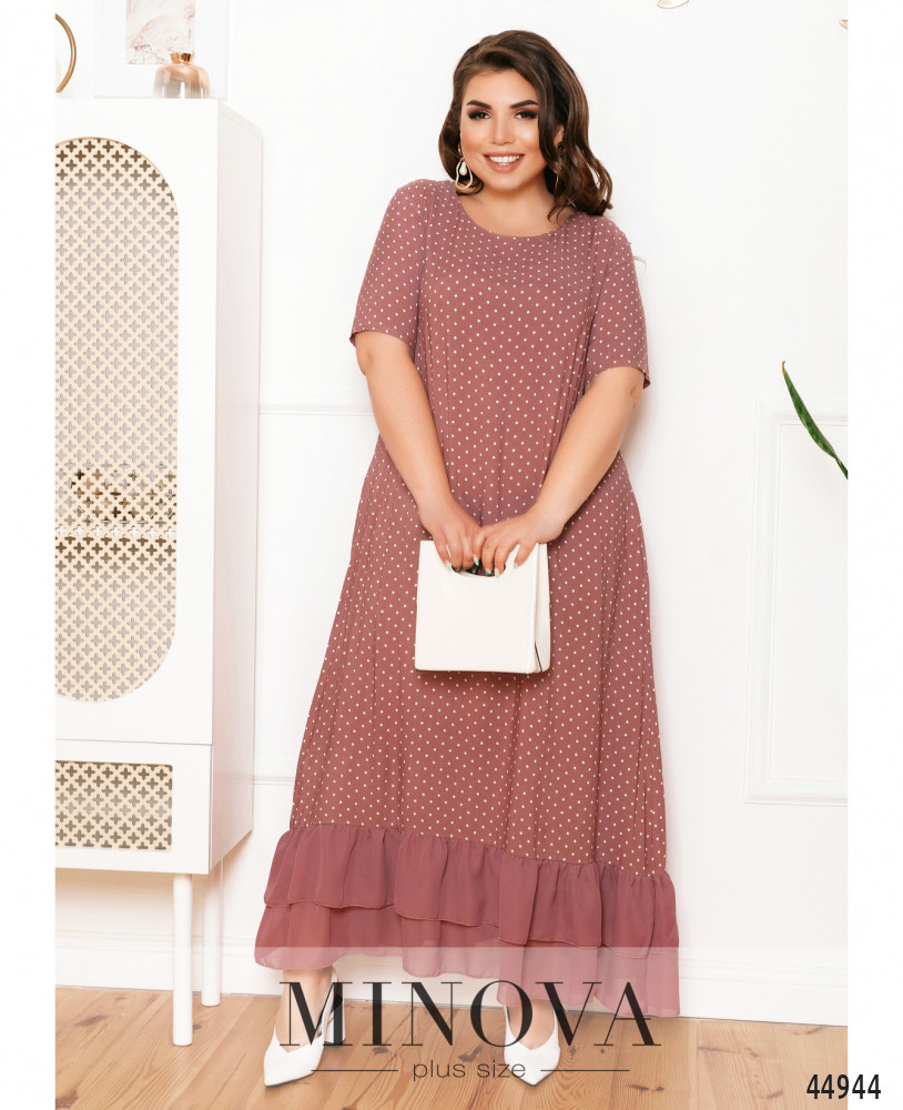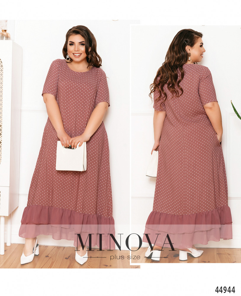 56 р-р: длина платья 132см, длина рукава от плечевого шва 27см, обхват рукава 42см, ОГ - 120см, ОТ -130см, ОБ -146см.