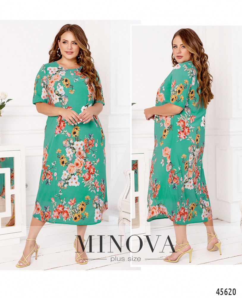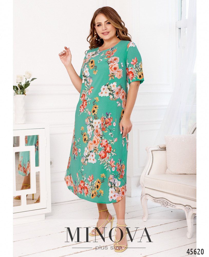 Стильное платье батал с ярким принтом, без застёжек и карманов, рукава без манжет, на груди вытачки. Подол по краям скруглённый. Вырез горловины полукруглый. Пояс НЕ входит в комплект.