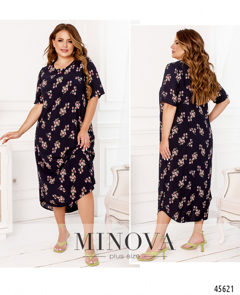 Стильное платье батал с ярким принтом, без застёжек и карманов, рукава без манжет, на груди вытачки. Подол по краям скруглённый. Вырез горловины полукруглый. Пояс НЕ входит в комплект.
