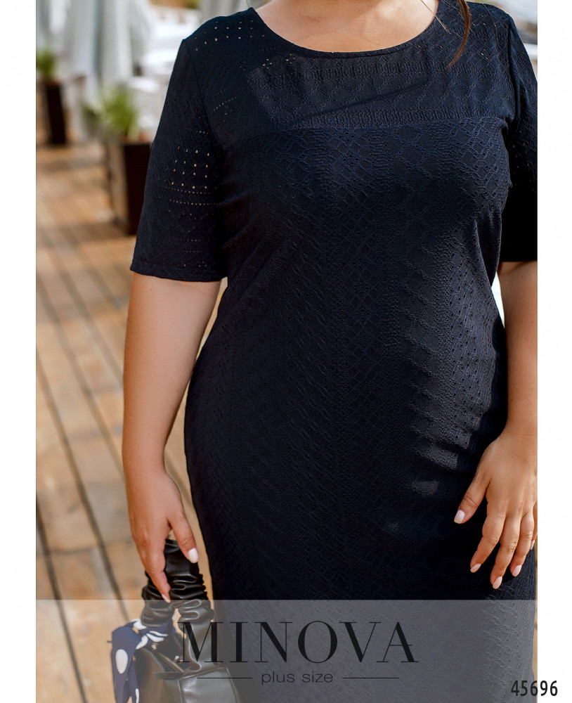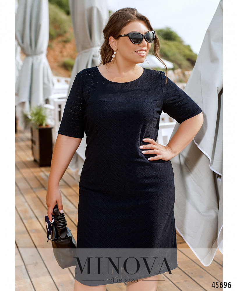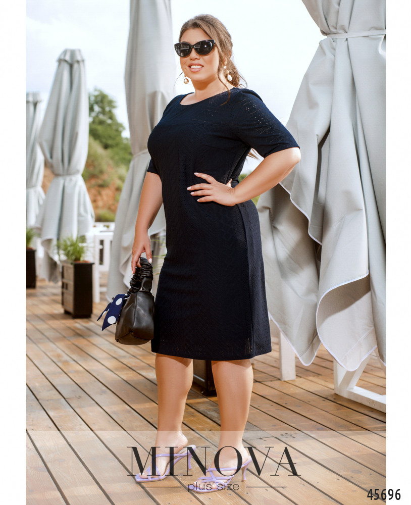 Эта изящная однотонная модель представляет собой летний вариант платья-футляра прямого кроя с подкладкой. Изюминкой этого платья является легкая трикотажная перфорированная ткань, из которой она выполнена. Классический лаконичный фасон делает эту модель универсальным решением встреч с друзьями, шоппинга и вечеринки.