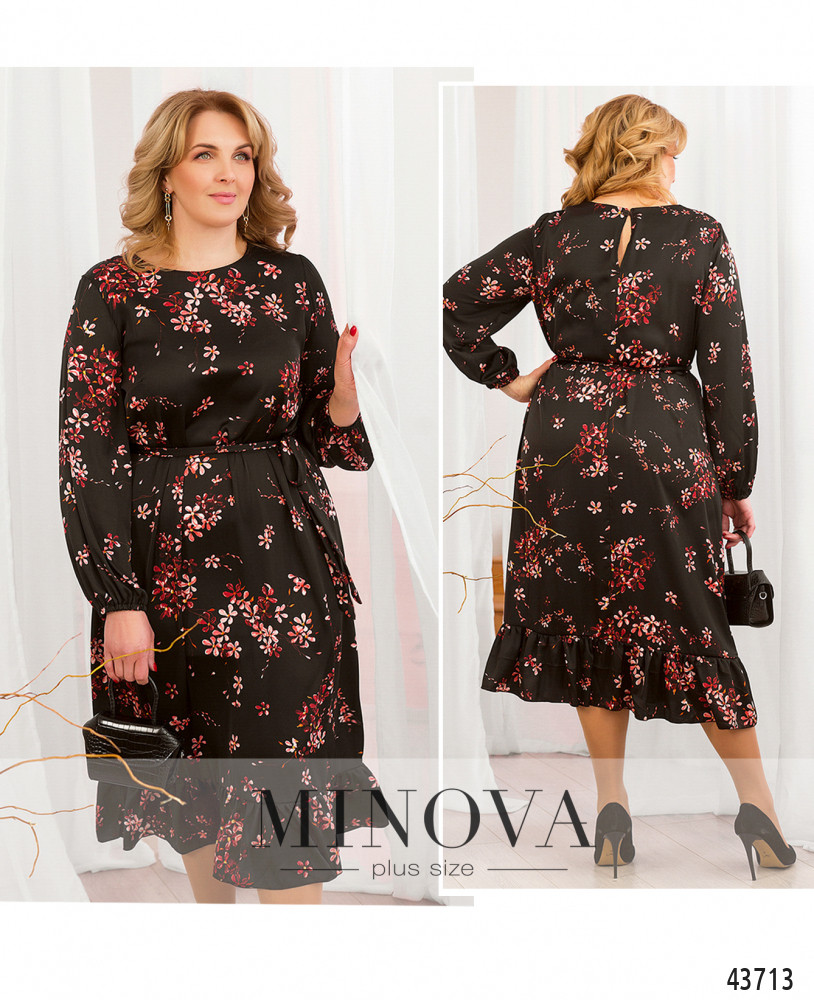 Элегантное, нарядное платье батал из мерцающего полуматового шёлка Армани. Рукава со вшитыми на запястьях резинками, по бокам - карманы в шве, на груди вытачки. Платье цельнокроеное. В комплекте пояс. Застёжка - пуговка сзади под шеей. Подол украшен мягкой оборкой.