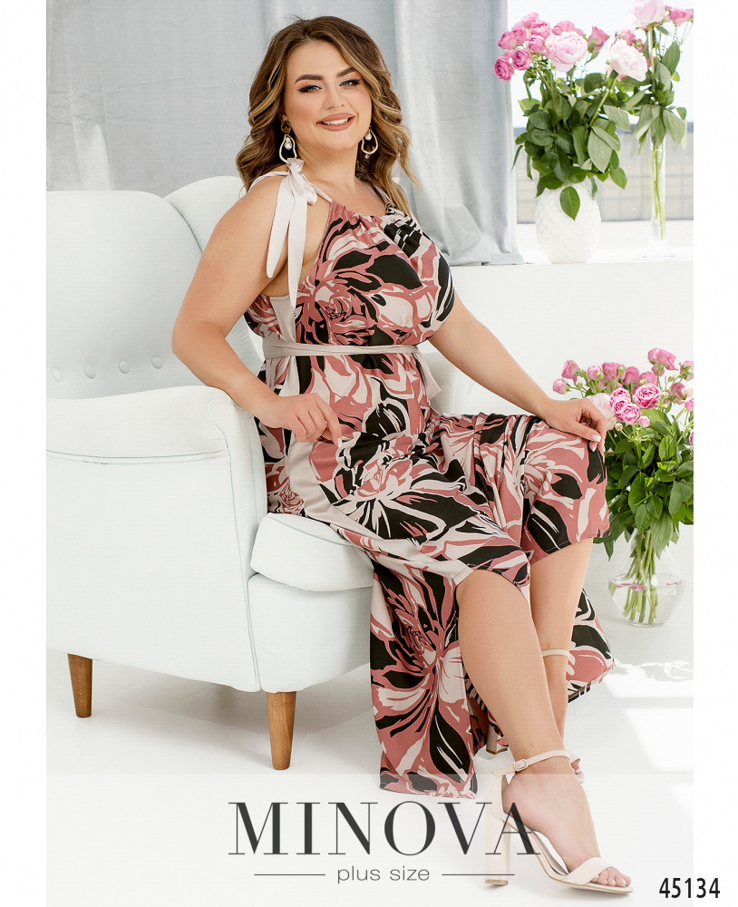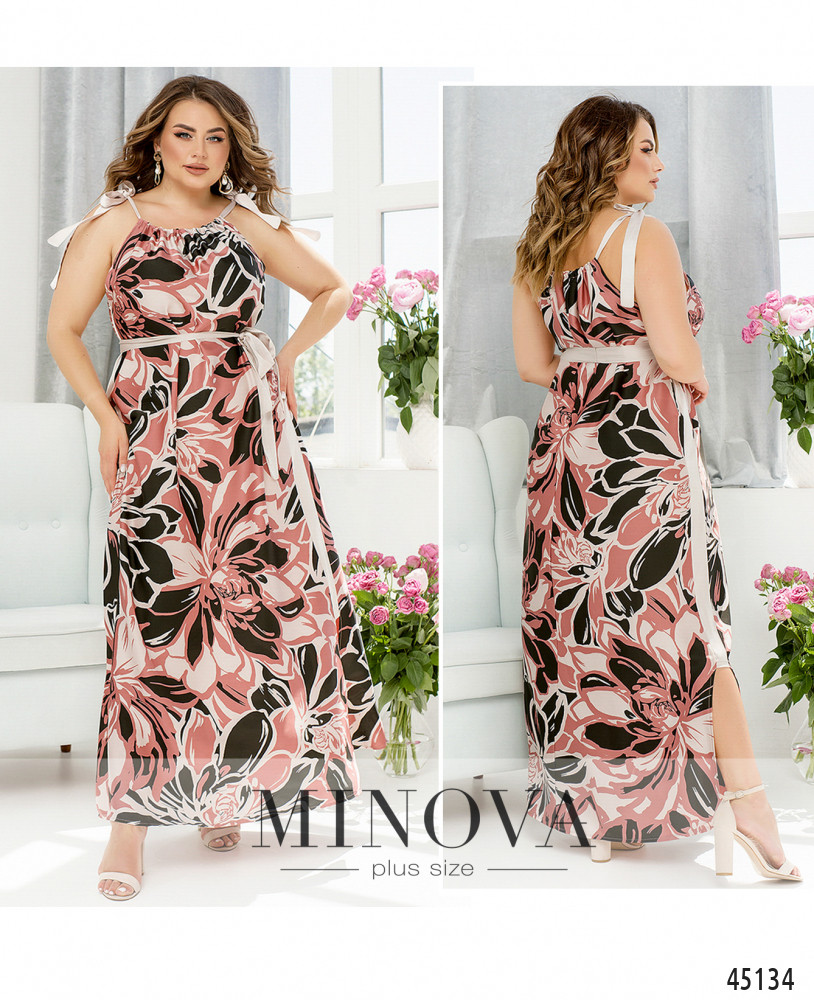 Нежное шелковое платье в пол пастельных оттенков на регулируемых бретелях. По бокам - разрезы и однотонные вставки-лампасы в тон бретелей, а также шелковый текстильный пояс, позволяющий легко менять силуэт платья выбирая утонченный приталенный или легкий воздушный образ.