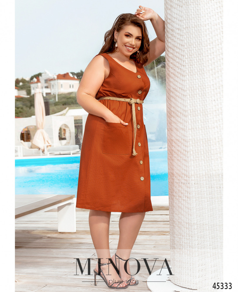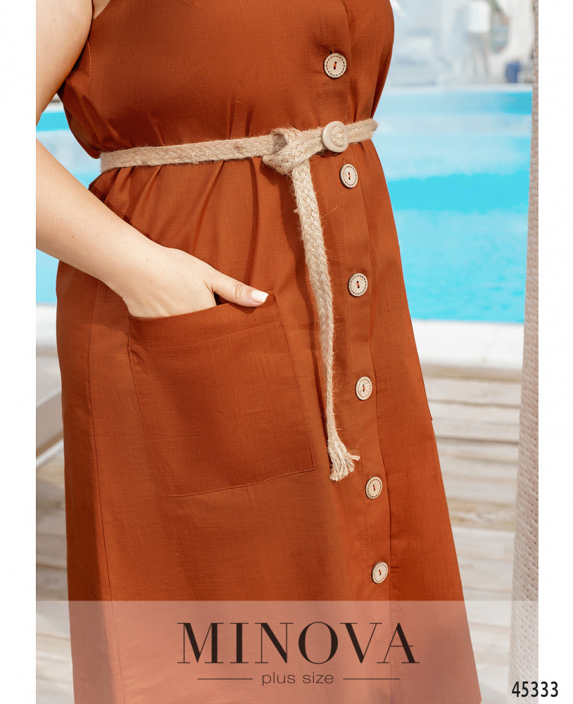 Лаконичное однотонное платье с накладными карманами и застежкой спереди на пуговицах выполнено из легкой дышащей ткани. Меняйте его силуэт от прямого к приталенному с помощью тонкого плетеного пояса, который идет в комплекте. Дополните эту модель босоножками, балетками или кедами для создания яркого летнего образа в стиле casual.