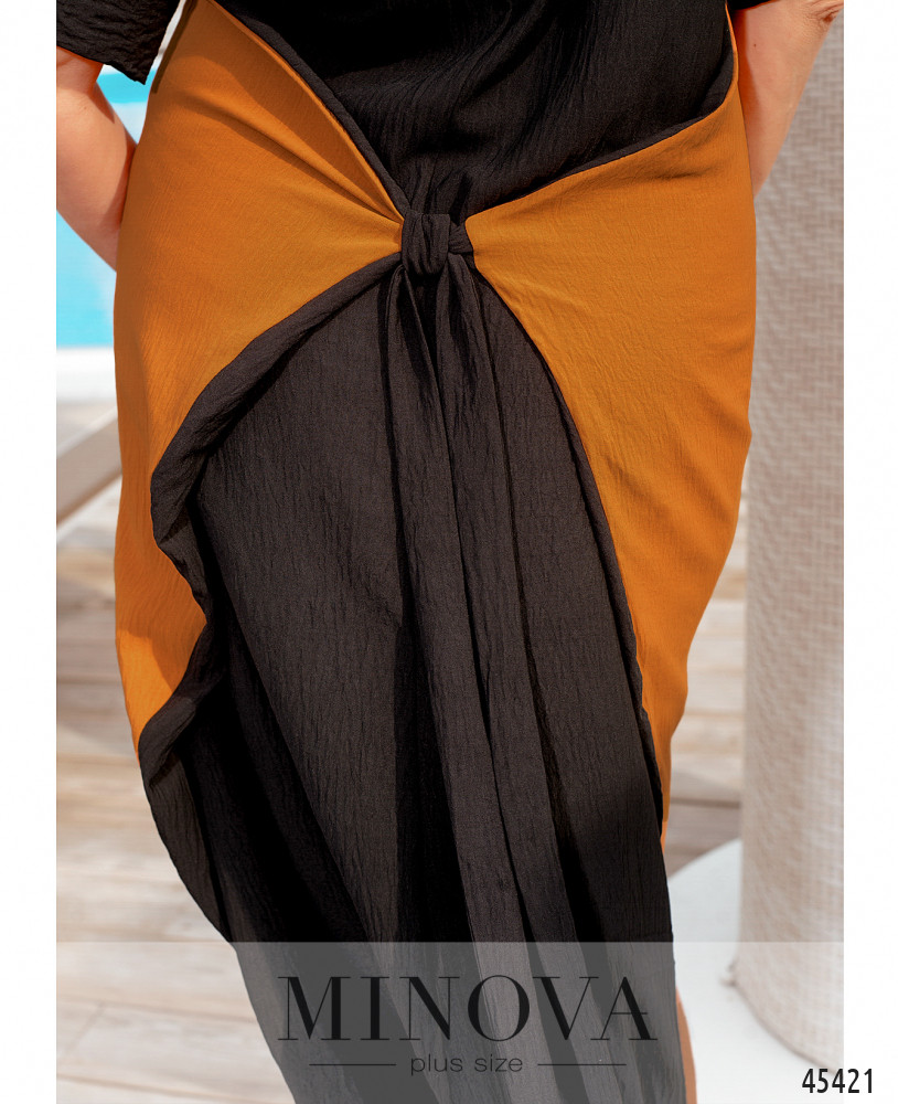 Женственное легкое платье макси, выполненное из невесомой летней ткани, безусловно позволит вам выделиться.   Минималистичный верх с полукруглым вырезом горловины и рукавами с приспущенной линией плеч, плавно переходит в абсолютно невообразимый подол, визуально похожий на крылья бабочки. Благодаря пришитым на бедрах завязкам, эту модель можно трансформировать, завязывая их спереди или сзади,  создавая стильные эффектные образы. В этом платье вы сможете проявить свою индивидуальность и почувствуете себя уникальной!