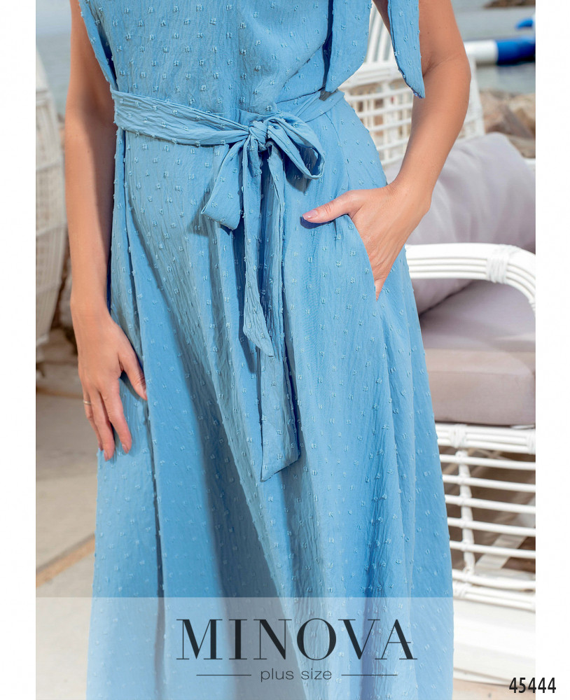 Лаконичное отрезное платье макси с карманами в боковых швах, выполненное из однотонной текстурной ткани, поможет вам создать нежный и чувственный образ. Кокетливые завязки на плечах и V-образный вырез горловины добавят женственности, а текстильный пояс в тон, который идет в комплекте, сделает образ завершенным.