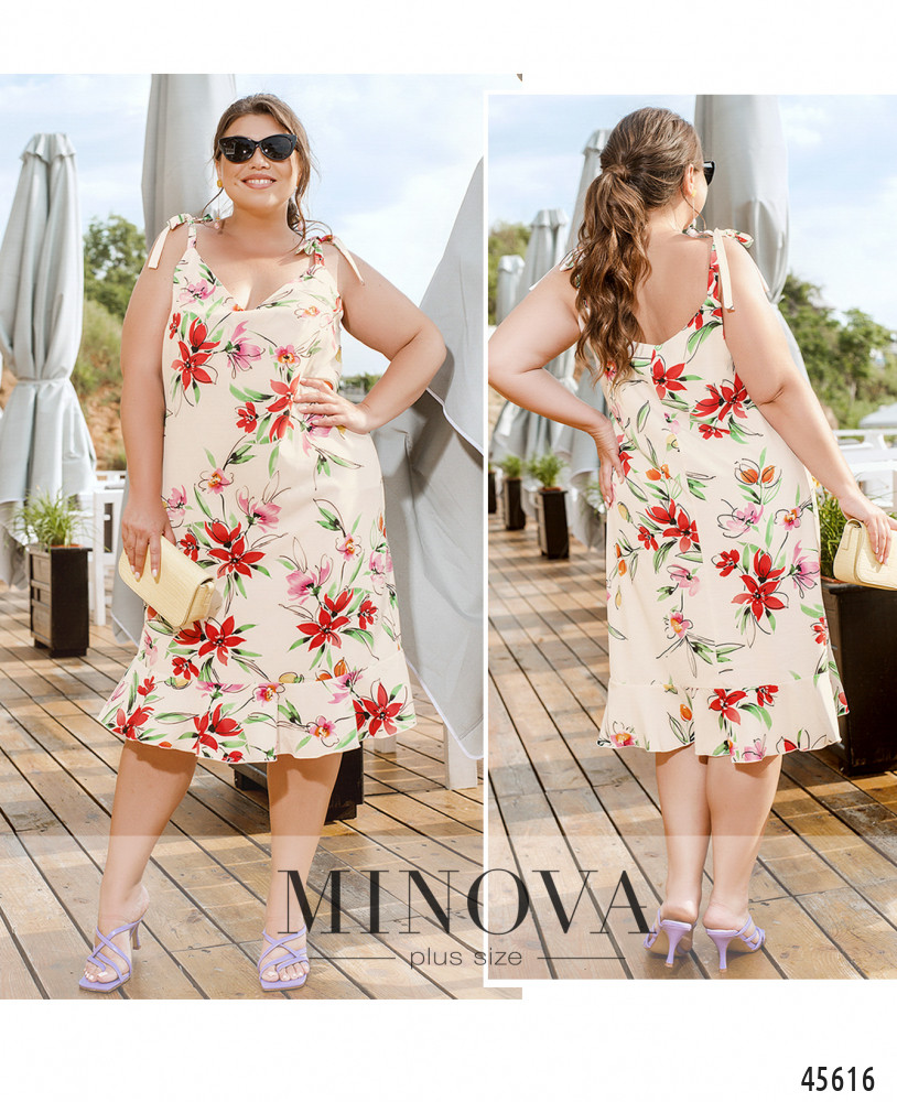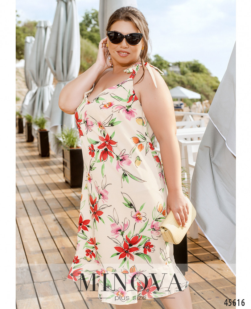 Романтичное летнее платье на тонких регулируемых бретелях с завязками внесет в образ чуточку кокетства, романтизма и женственности. Эта модель дополнена V-образным вырезом на груди и воздушной оборкой по низу подола. Пояс НЕ входит в комплект.