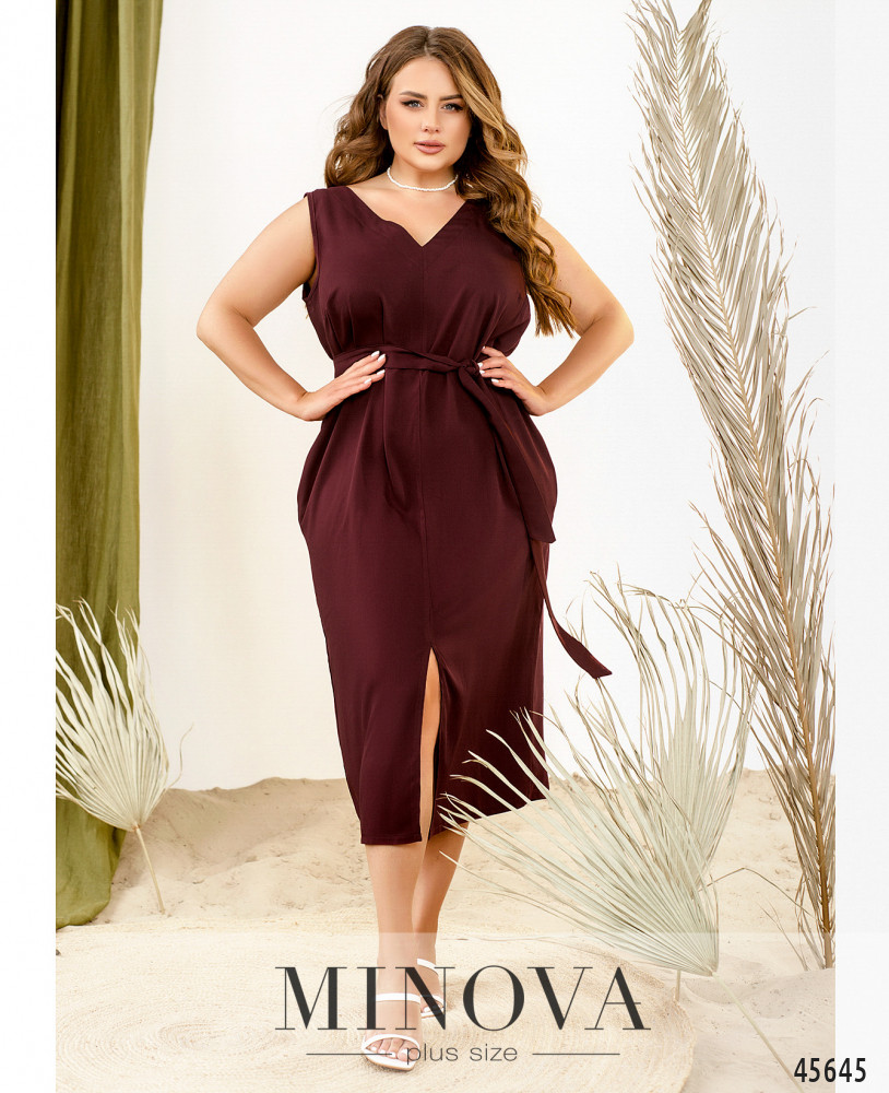 Минималистичное однотонное платье прямого кроя с V-образным вырезом горловины впереди и на спинке подойдет для прогулок и встреч с друзьями, шоппинга и вечеринки. Модель дополнена изящной шлицей спереди и текстильным поясом в тон, который входит в комплект Пояс входит в комплект.