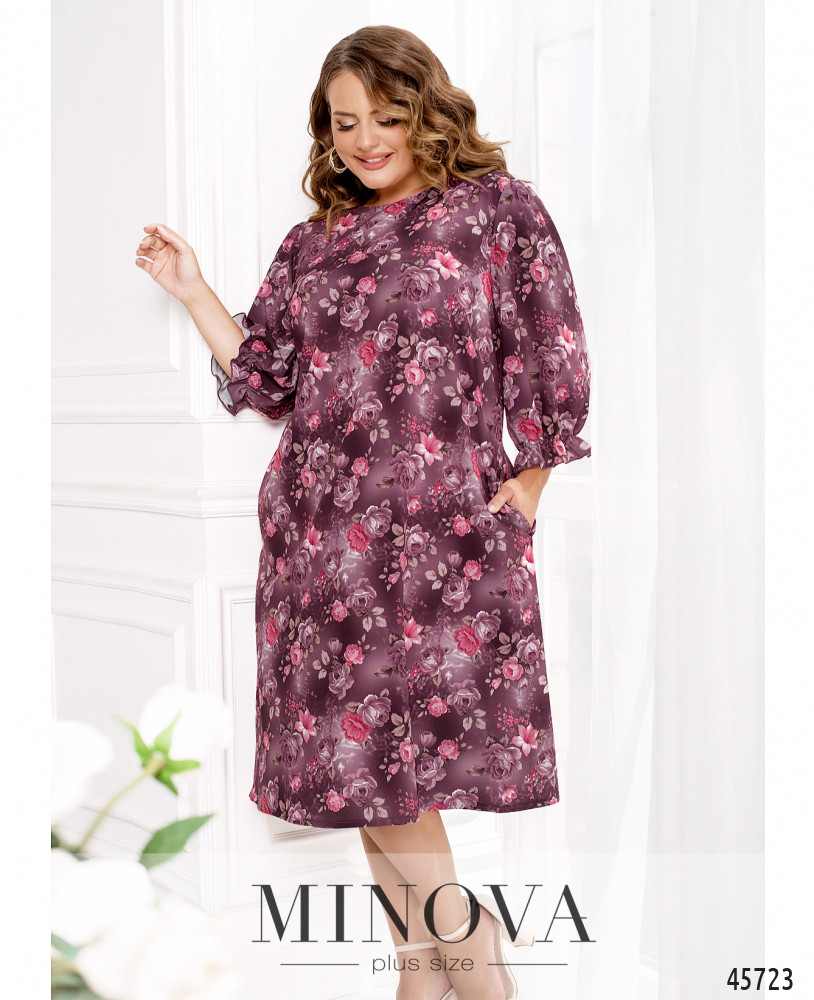 Нежное женственное платье с полукруглым вырезом горловины подойдет для прогулок и встреч с друзьями, шоппинга и вечеринки. Модель дополнена воздушными рукавами длиной 3/4 с резинкой и небольшими оборками вместо манжет, а также карманами в боковых швах.